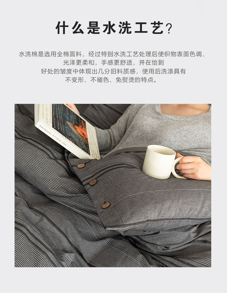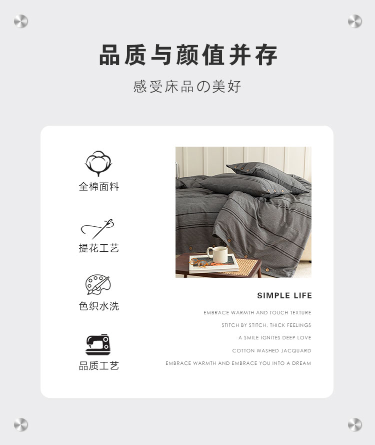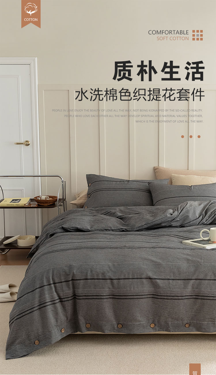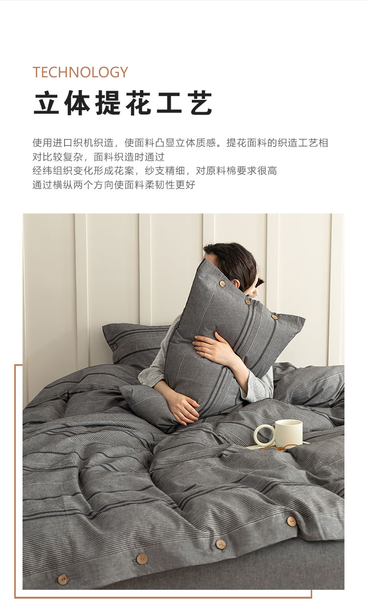 当前位置: 91家纺网 > 商品网购 > 床品套件 > 四件套 > 水洗棉四件套 > 华超针织 2021新款水洗纽扣提花四件套 深灰