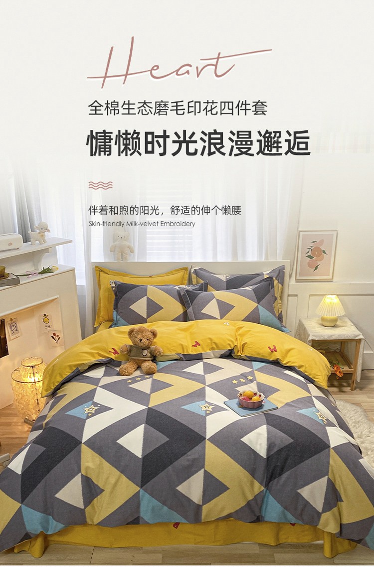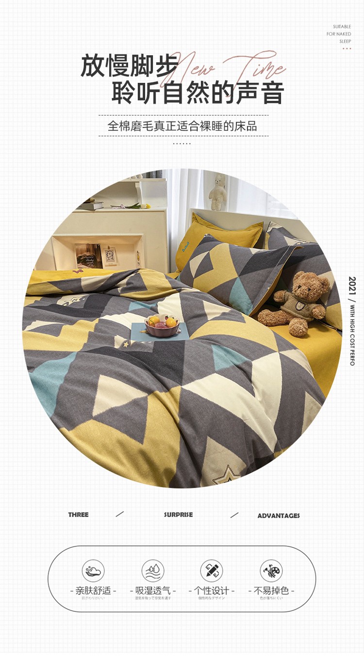 商品名称:金爱家 2021新款大版秋冬纯棉磨毛四件套 山葵