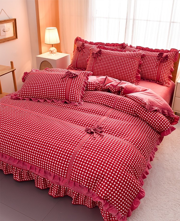 金莎浪 2022新款A类加厚牛奶绒提花四件套-凯利凯利-豆沙红,凯利-豆沙红