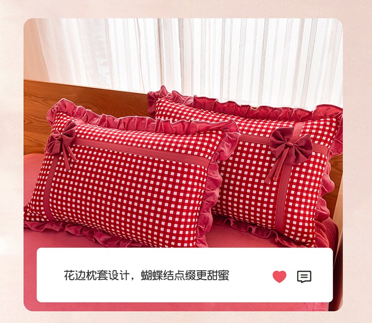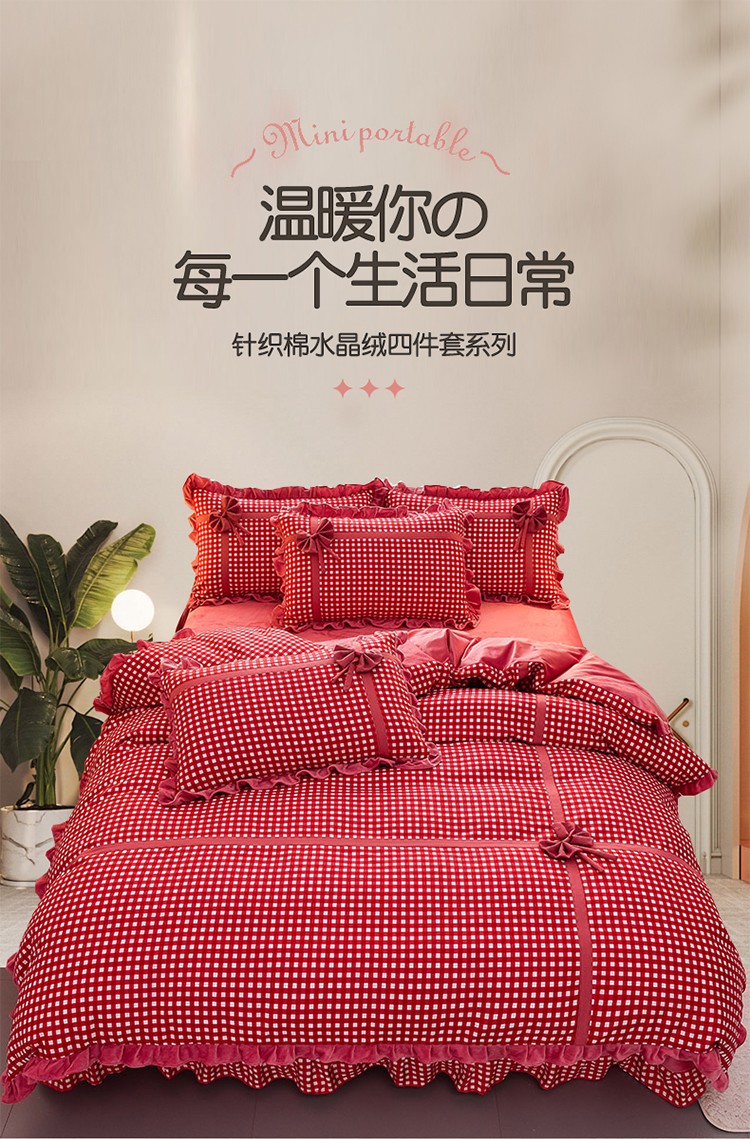 金莎浪 2022新款A版针织棉B版水晶绒四件套 蝶之恋红