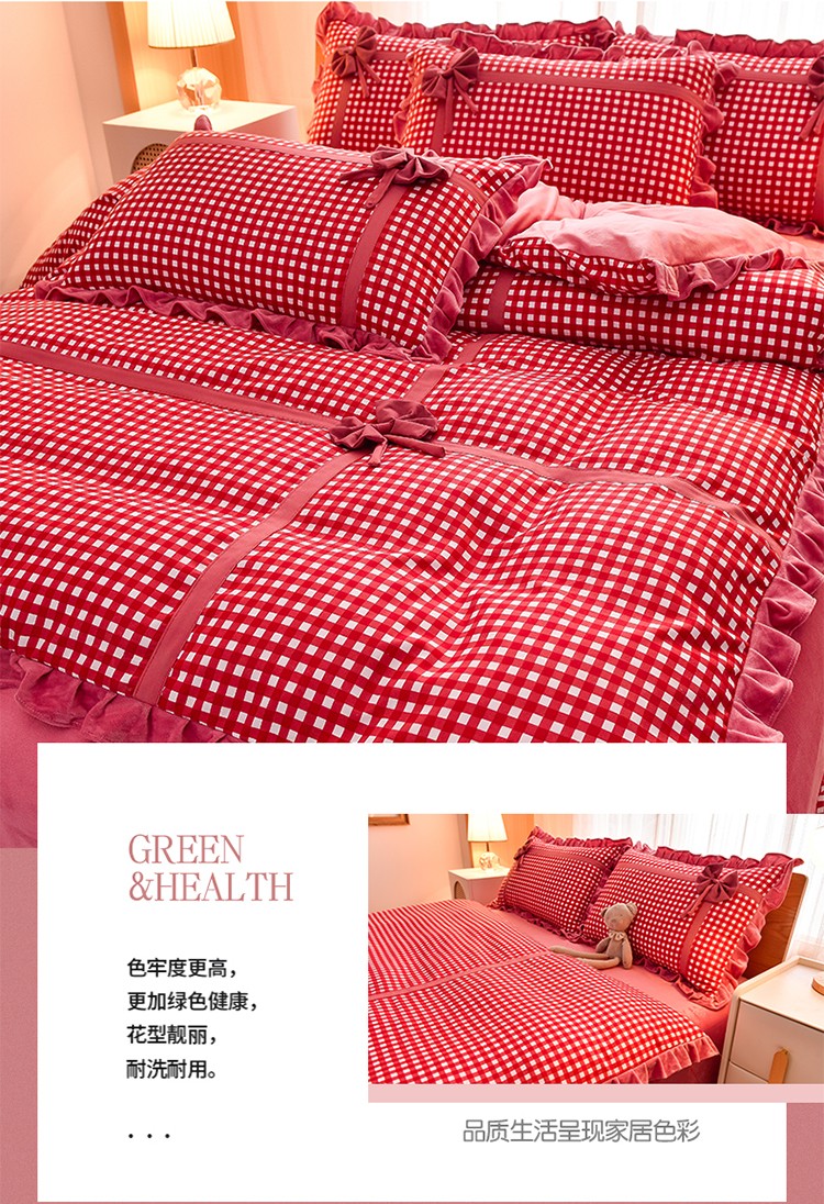 (总)金莎浪 2023新款织爱夏被四件套,草绿格,粉红格,黑白格,深红格
