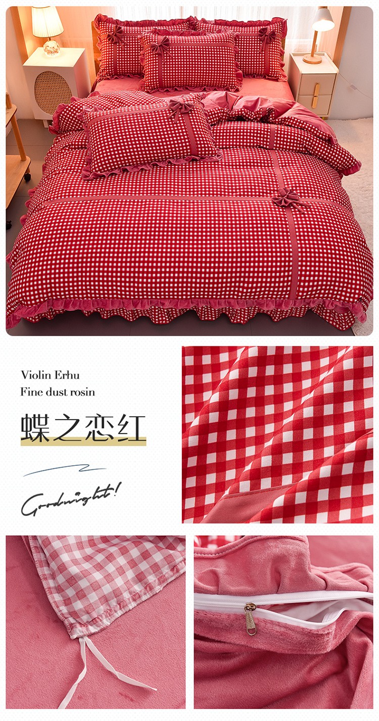 (总) 金莎浪 2022新款A版针织棉B版水晶绒四件套,蝶之恋红,蝶之恋玉,蝶之恋绿,蝶之恋深灰,蝶之恋深蓝,蝶之恋粉,蝶之恋紫