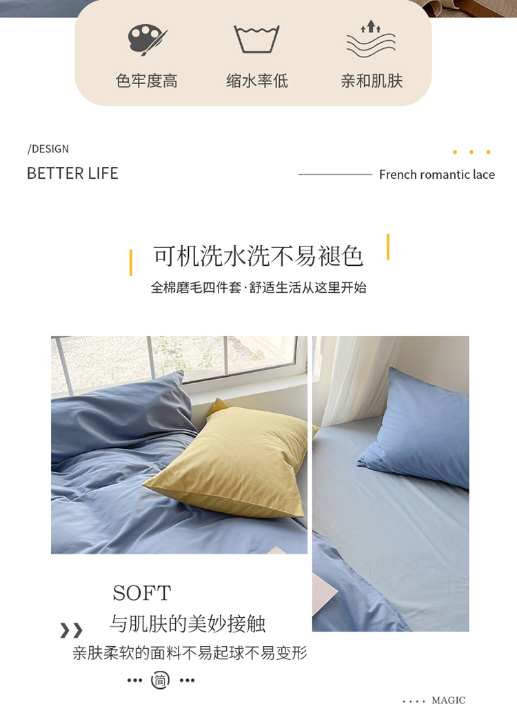 商品名称:时年家纺2021新款全棉磨毛纯色混搭四件套 芝士盐盐