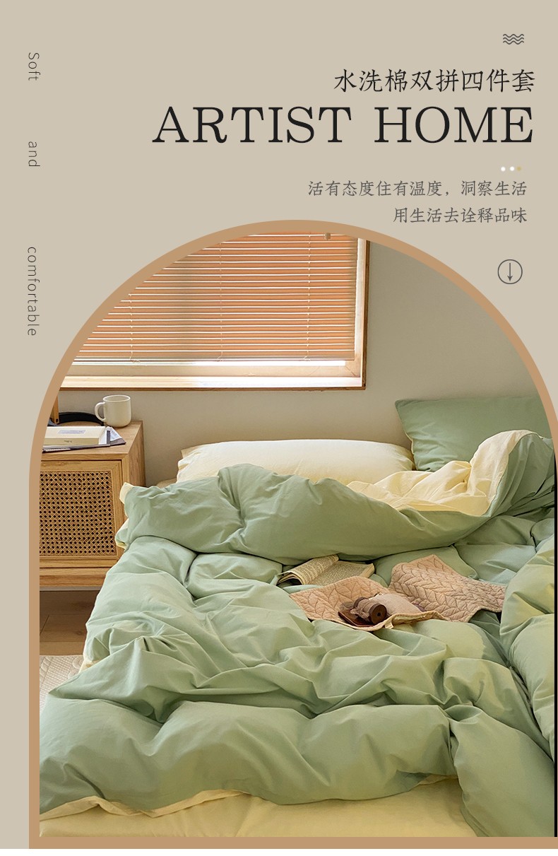 (总)梦享生活家居 2021新款水洗棉双拼四件套,ins淡灰,ins抹茶,ins奶茶,ins浅蓝,橙色+柠檬黄,淡灰色+蜂蜜黄,淡雅绿+奶茶,蜂蜜黄+抹茶,蜂蜜黄+奶茶,橘粉+淡灰,抹茶+奶茶,藕紫+淡雅绿,浅蓝+奶茶,雾蓝+浅蓝