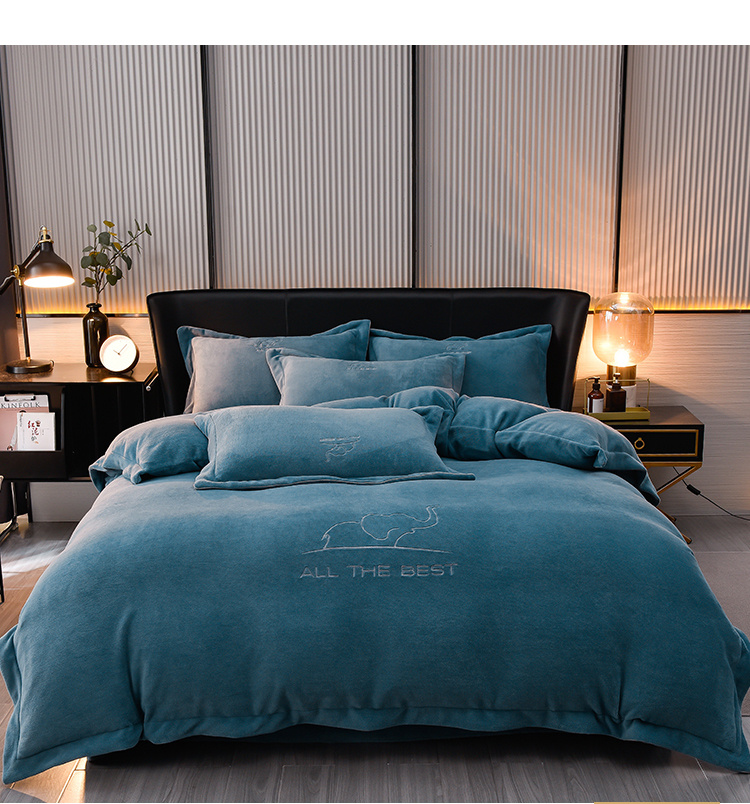 米奈家居 2024新款A类婴儿绒四件套有质检报告小象 湖蓝