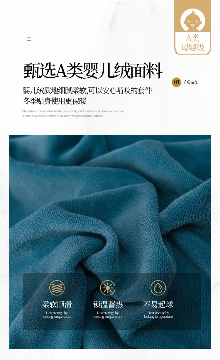 (总)米奈家居 2025新款A类高克重婴儿绒四件套-吉娜系列,淡雅粉,豆沙绿,孔雀绿,奶昔白+浅灰,浅杏色,绅士灰,西瓜粉,芋泥紫