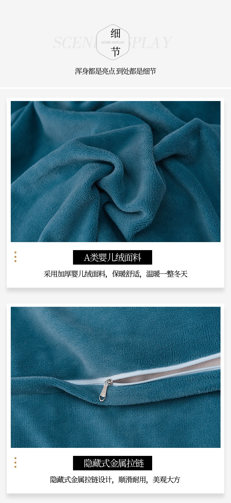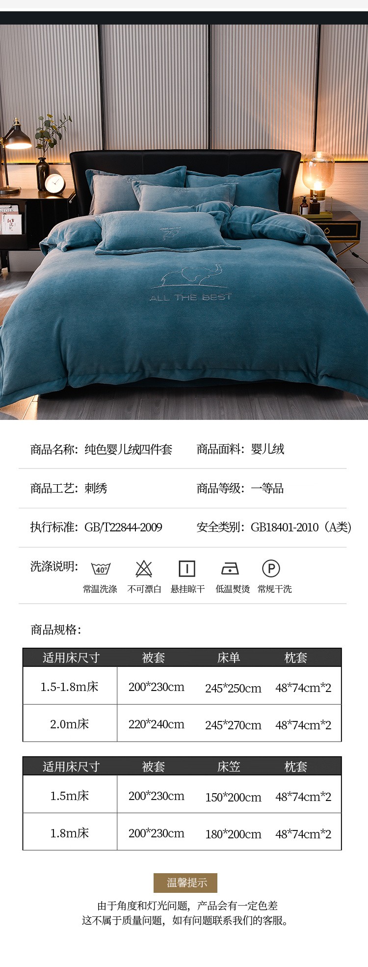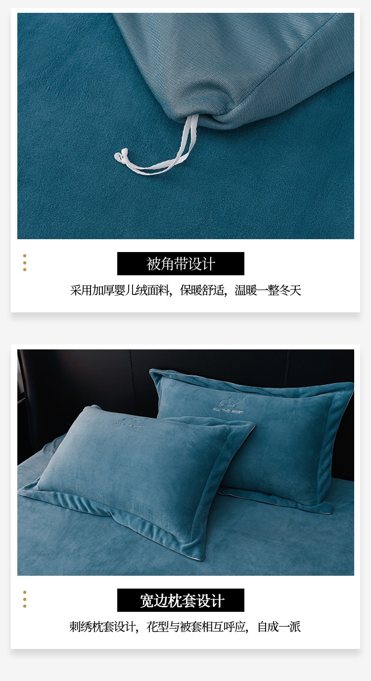 商品名称:米奈家居 2024新款A类婴儿绒四件套有质检报告小象 湖蓝