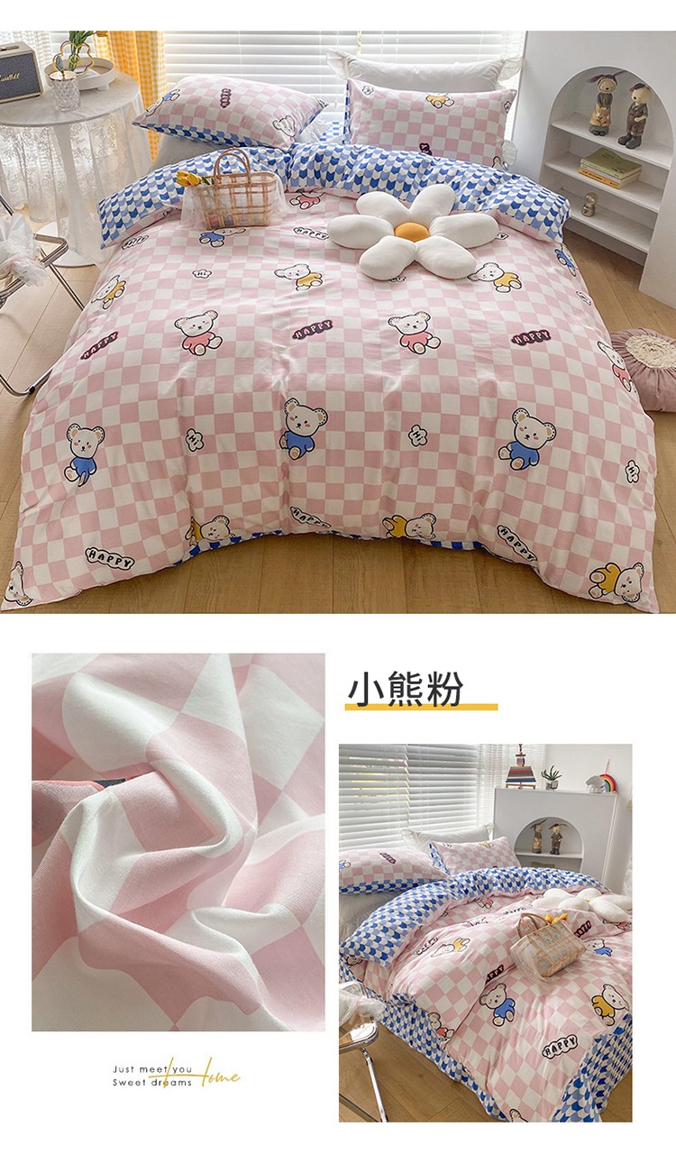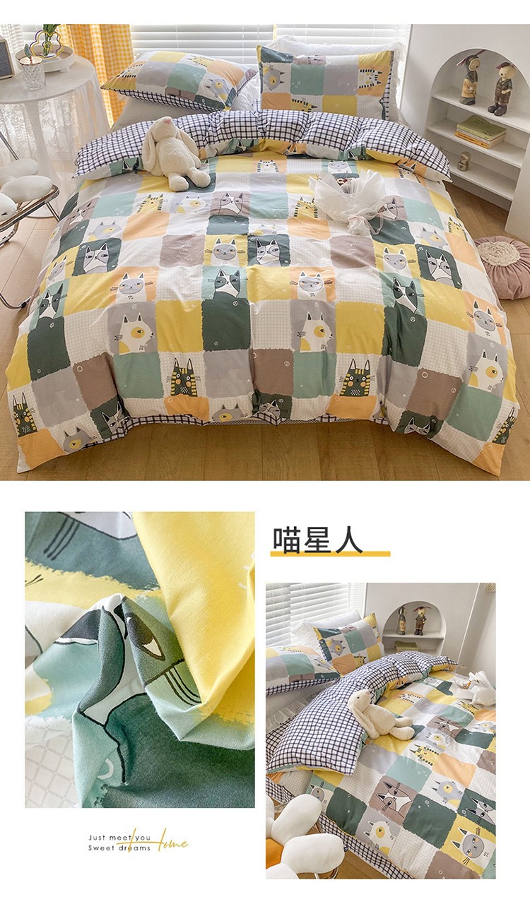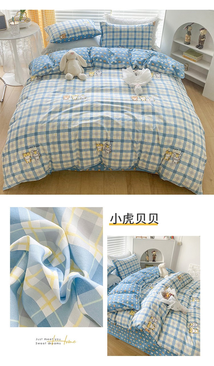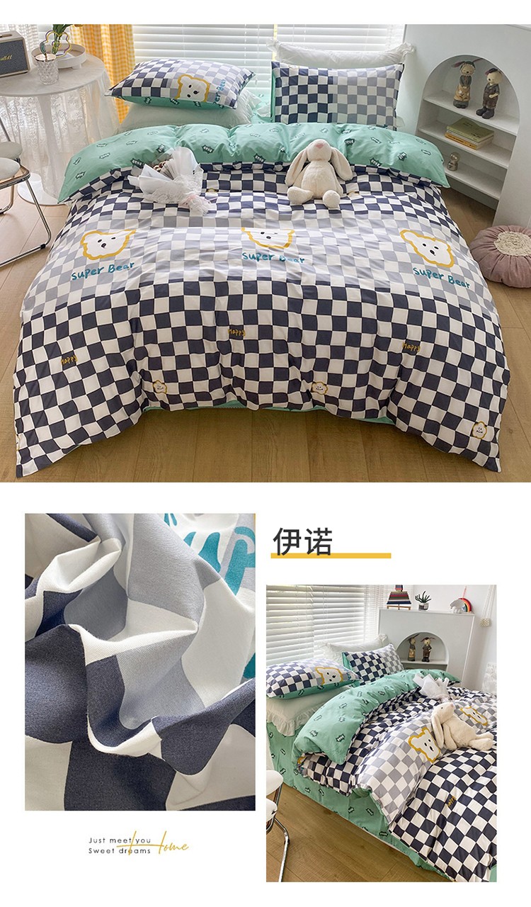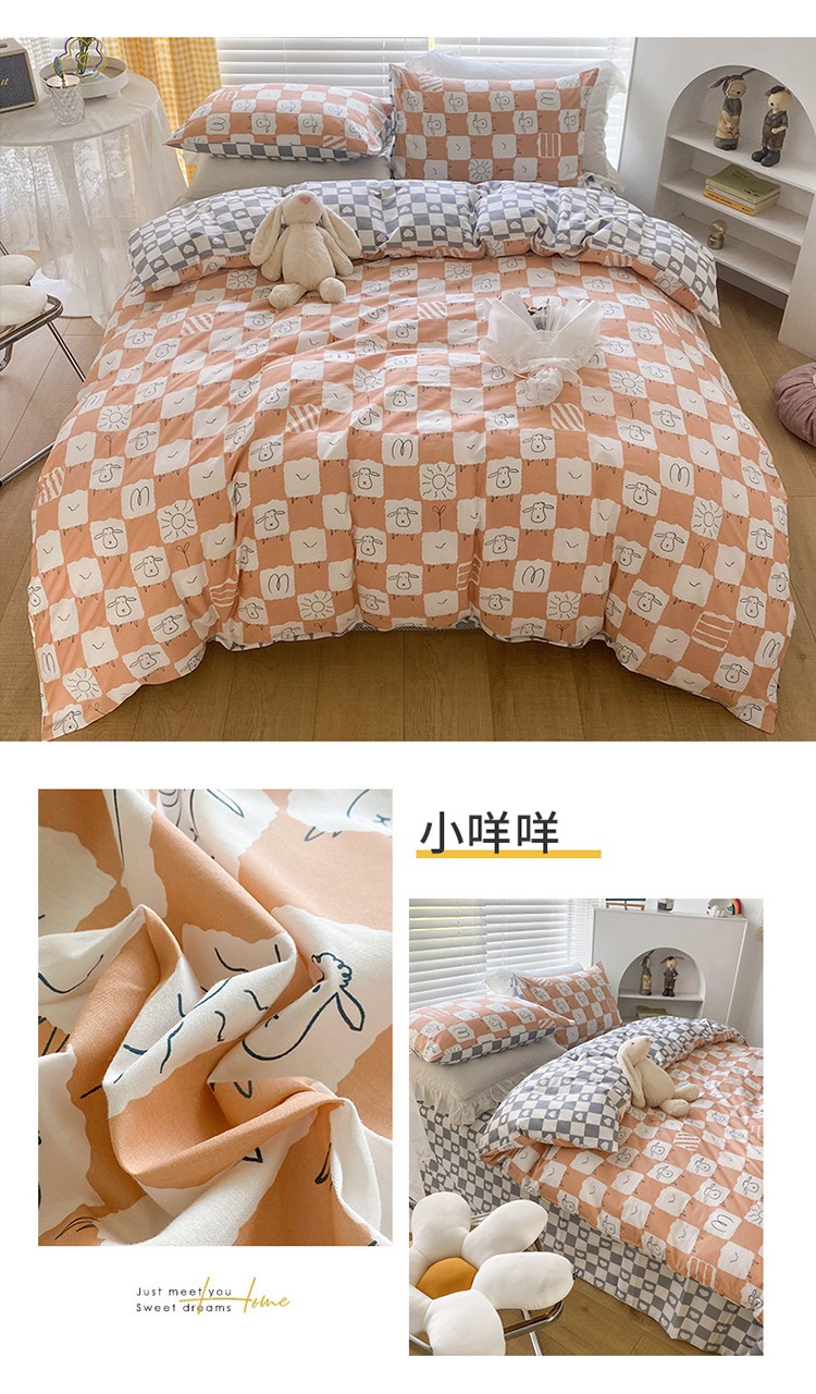 (总)2023新款40支纱全棉13070锁边工艺款四件套系列,格子爱心,嘉兰,咖条,朗尼,小兔兔,星星兔