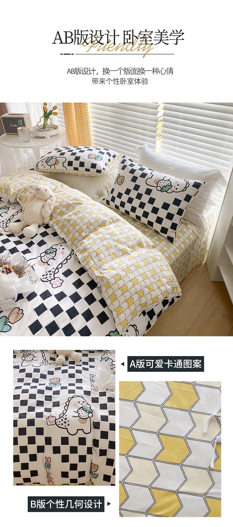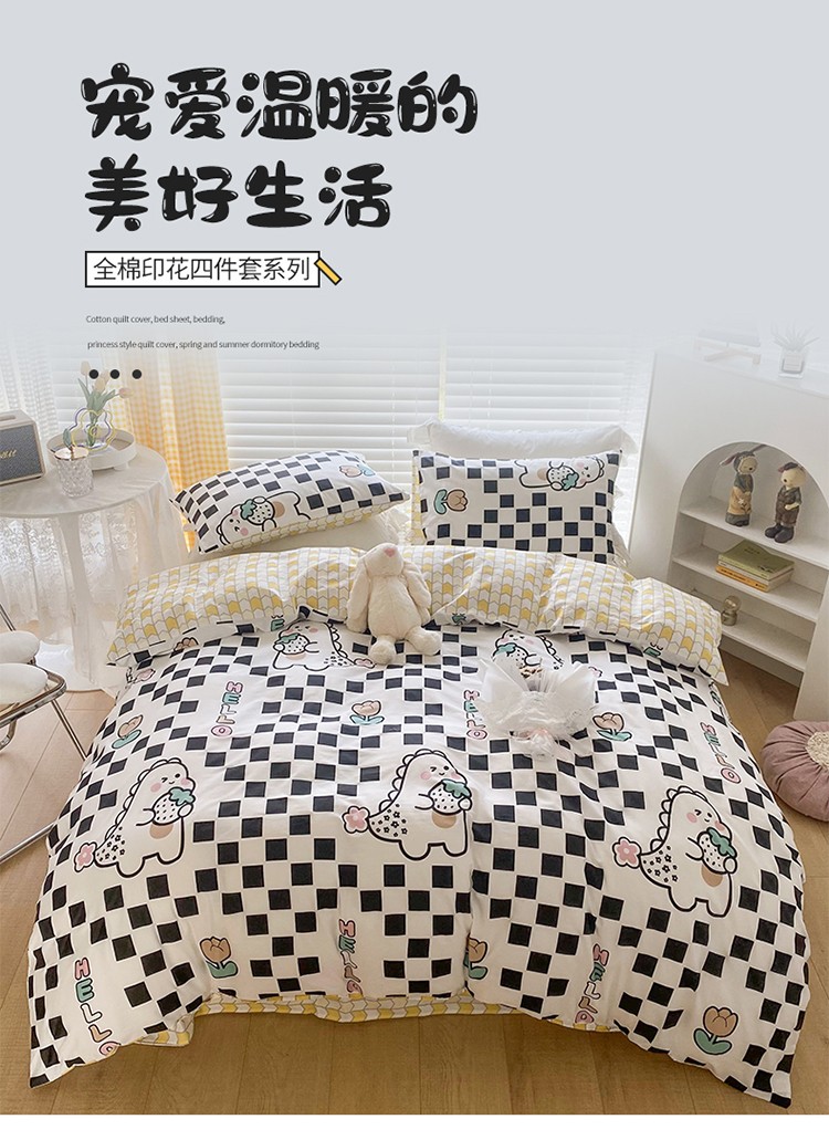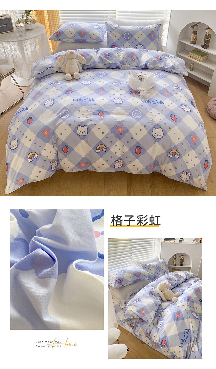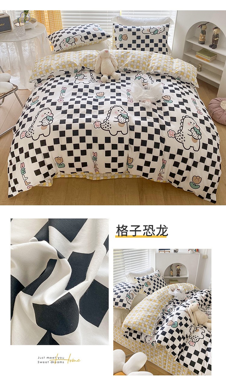 (总)2023新款40支纱全棉13070锁边工艺款四件套系列,格子爱心,嘉兰,咖条,朗尼,小兔兔,星星兔