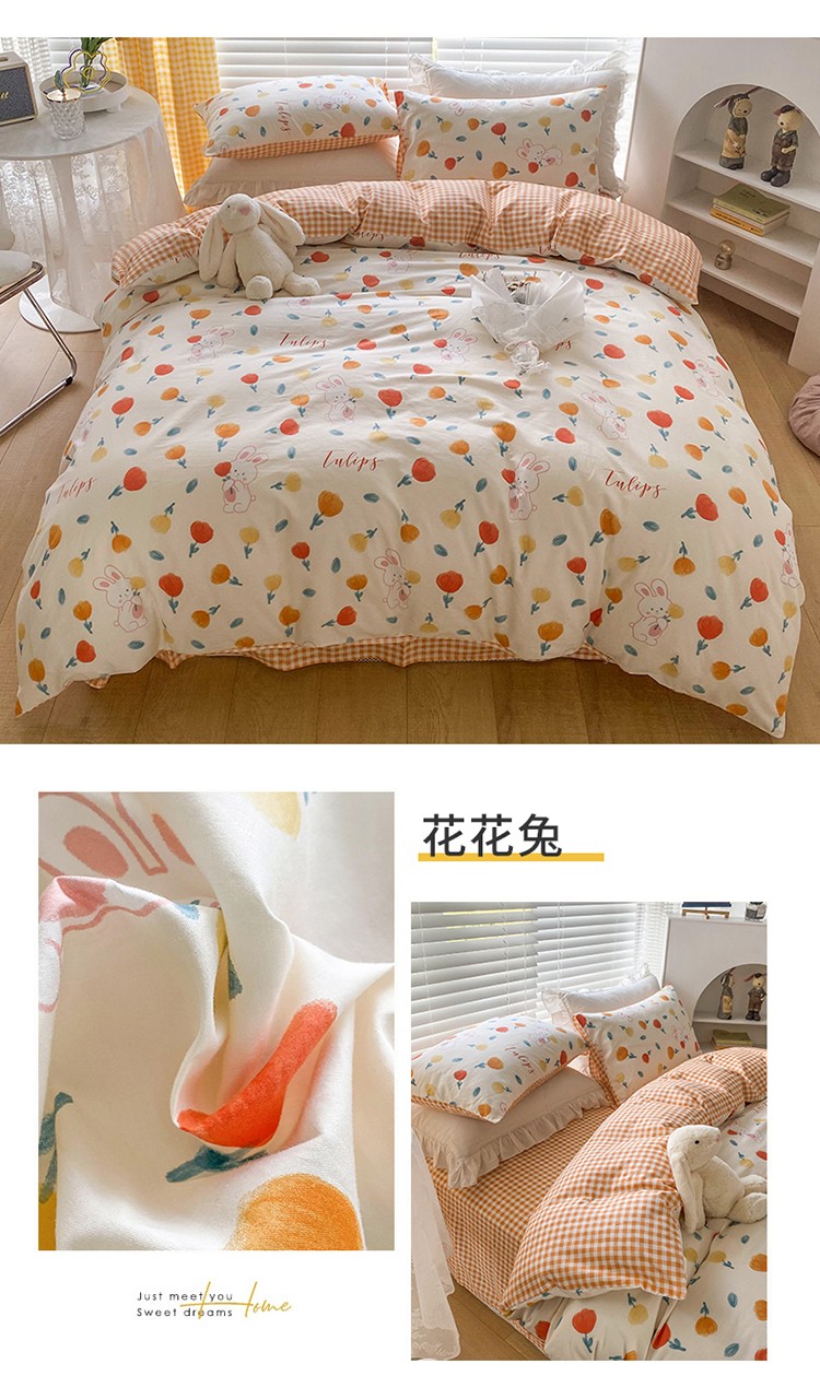 (总)珺柔家纺 2023新款13372全棉印花四件套,朵拉花园,粉色郁金香 ,可爱兔,迷你兔,太阳花,顽皮狗,喜结连理,薰衣草