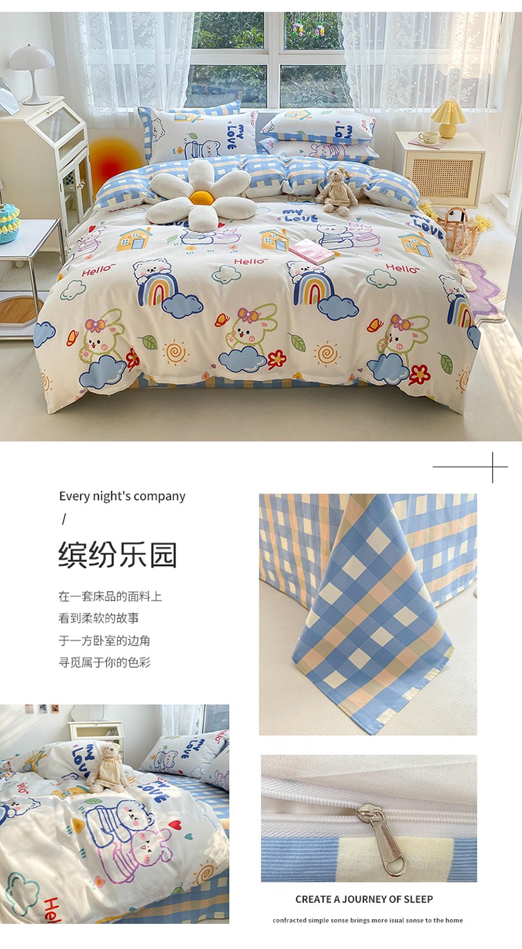 (总)曼之夏 2025新款全棉纯棉40支学生季卡通印花四件套,椰蓝小腊肠,茶茶狗,格子猫,嗨皮狗,开心屋,可爱多,可可汪,玛奇朵,奶昔小熊,泡芙小象,曲奇小狗,趣味熊,甜甜圈,甜心猫咪,童画,小狗日记,樱桃熊仔