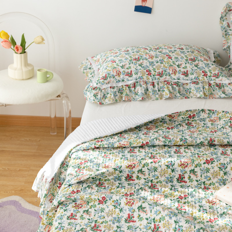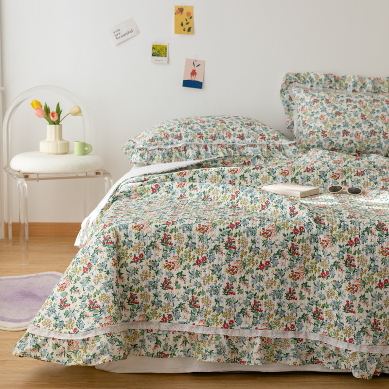 淑女公社家纺 2022新款纯棉13372韩版镂空小花边床盖 暗香疏影