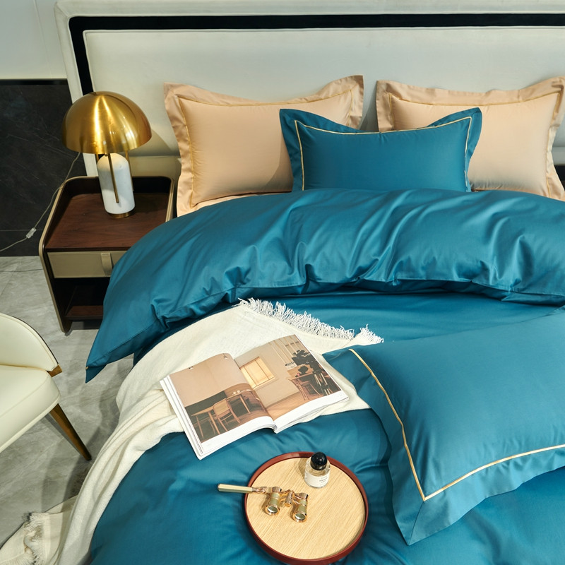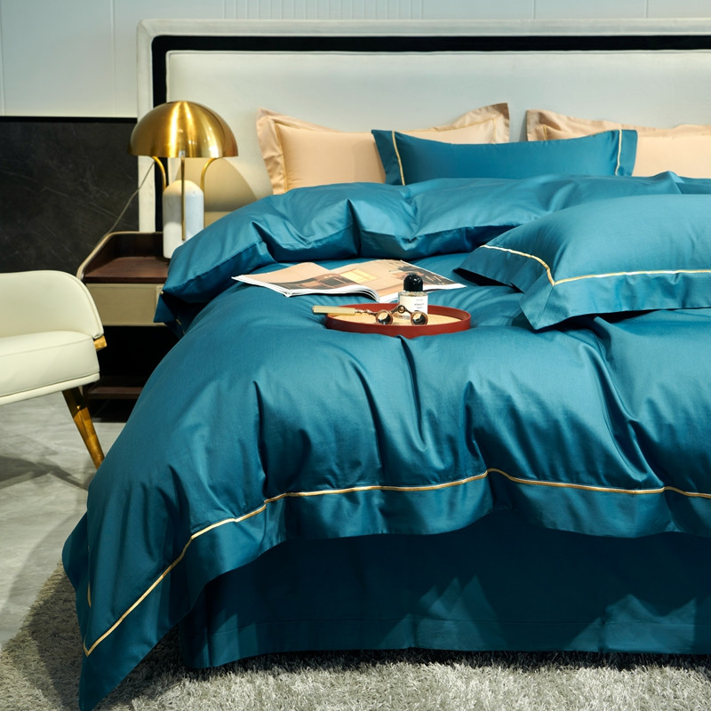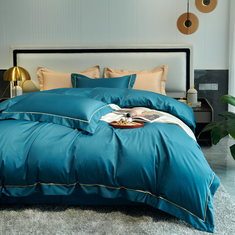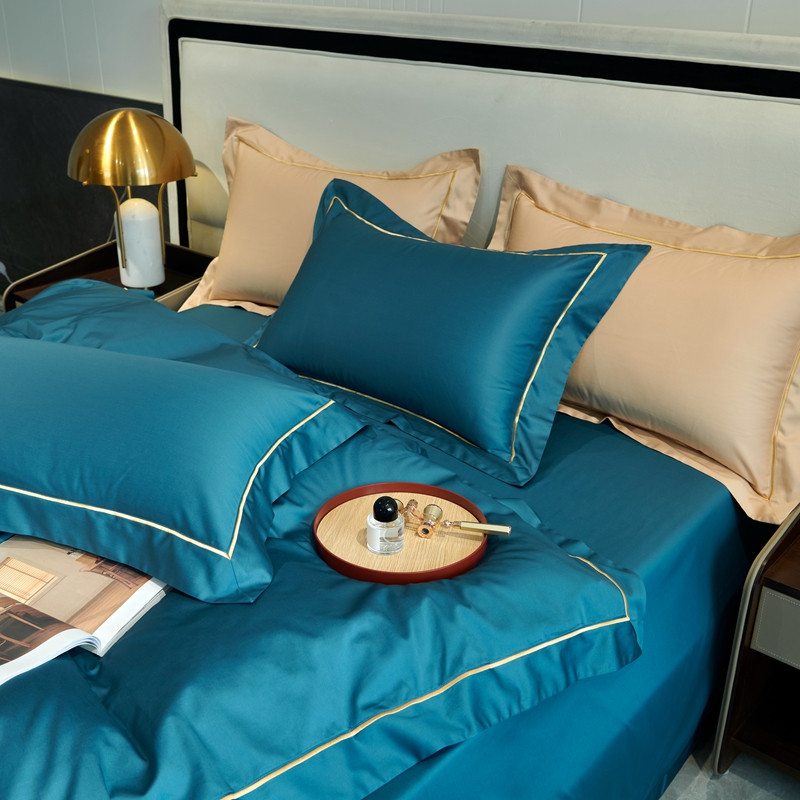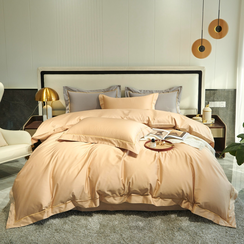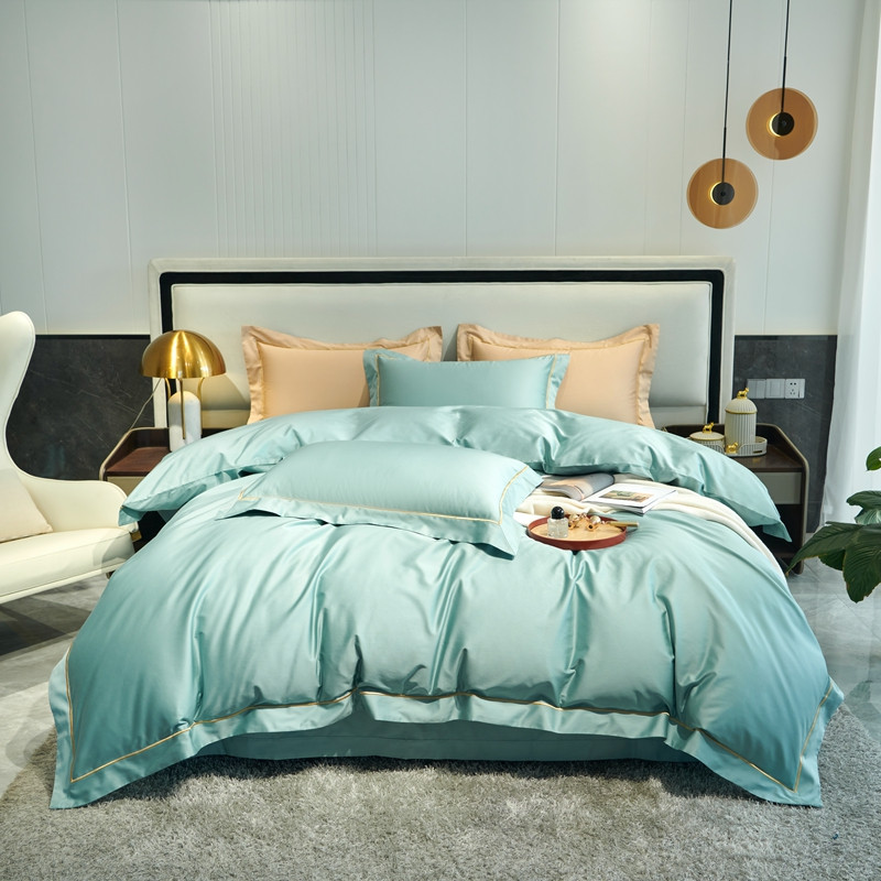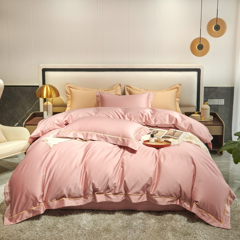 (总)禧澜庭 2024新款纯棉全棉斜纹四件套埋线轻奢三件套,艾玉粉,帝都灰,和风蓝,焦糖橙,米卡其,维克绿