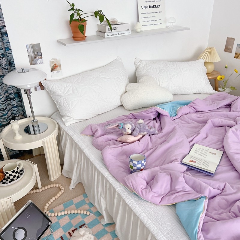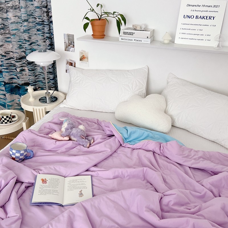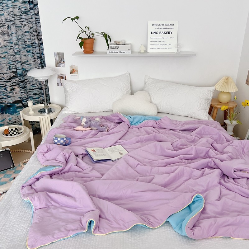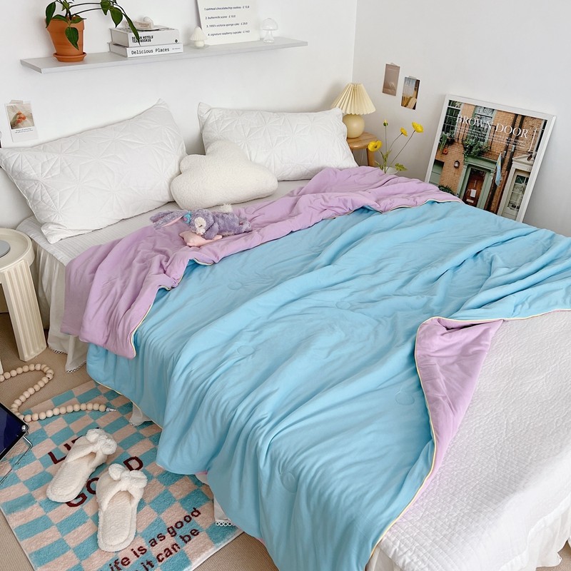 星期八 2022新款马卡龙针织棉大豆夏被 粉紫蓝