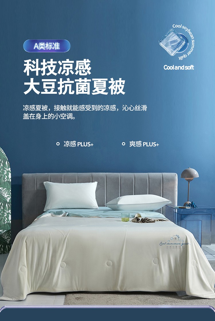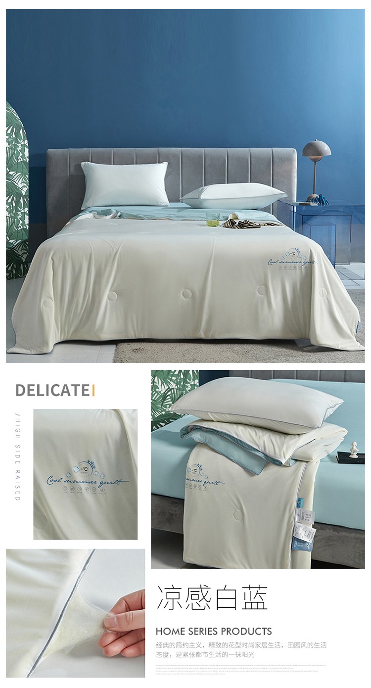 当前位置: 91家纺网 > 商品网购 > 床品套件 > 四件套 > 夏被四件套 > 头等舱 2022新款科技A类凉感大豆抗菌夏被凉感白蓝