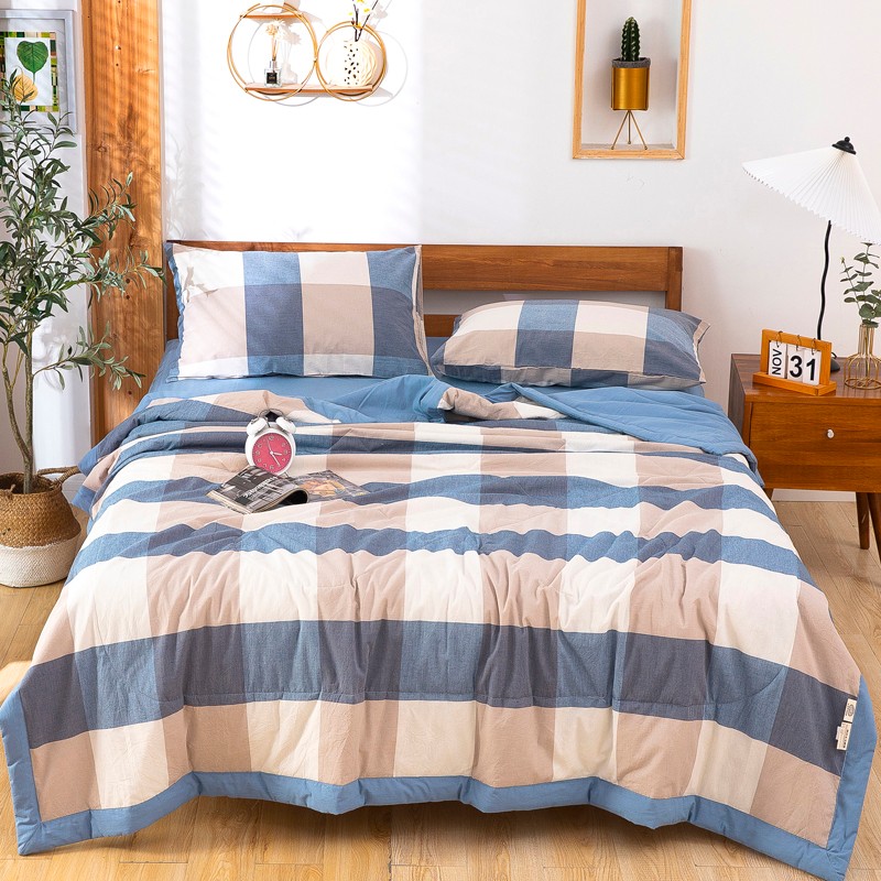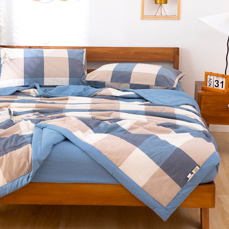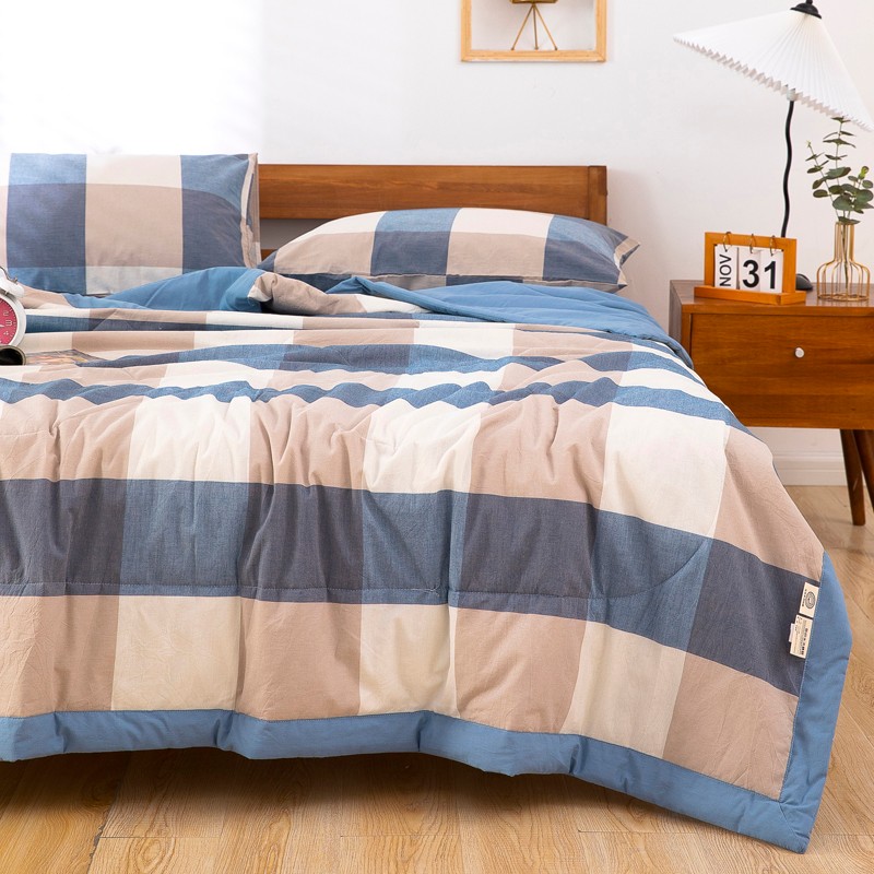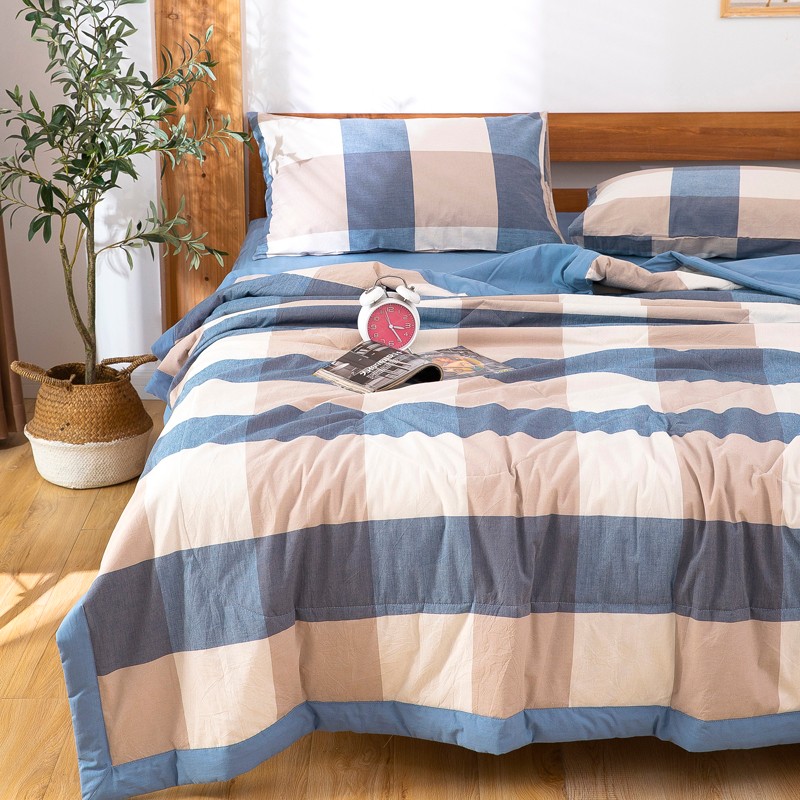 商品名称:天瑜 2024新款棉花芯色织水洗棉夏被 蓝大格