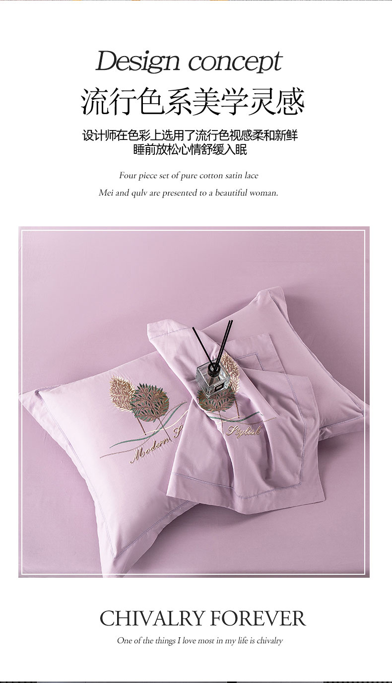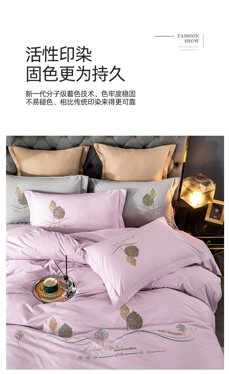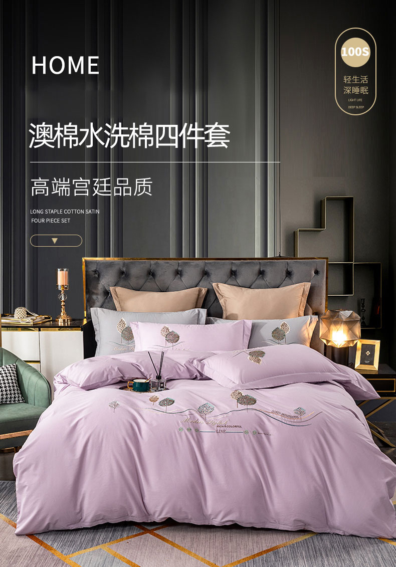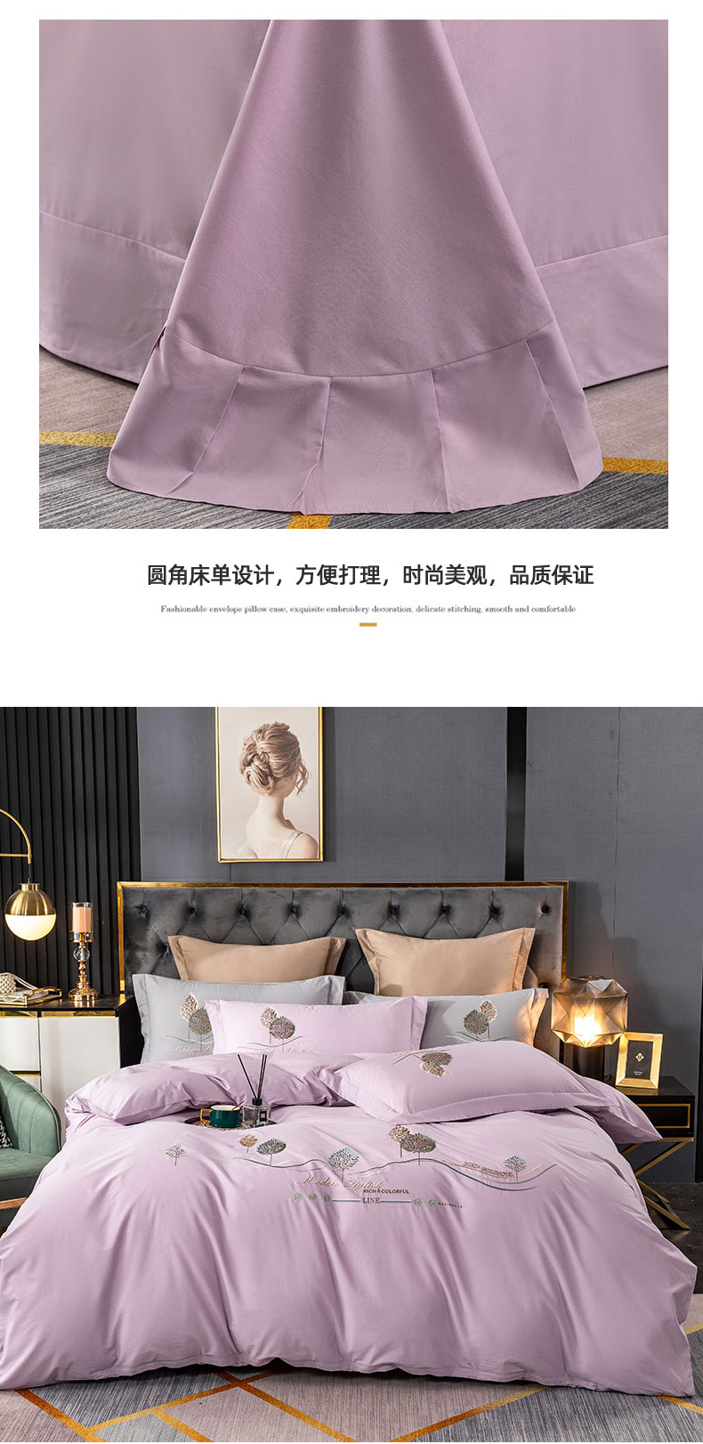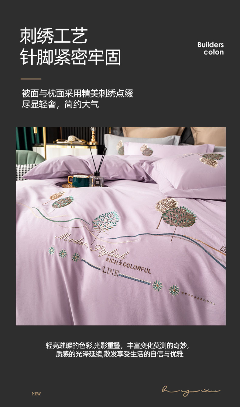 商品名称:昊翔2024款澳棉水洗棉轻奢风刺绣款四件套森林派对浅紫