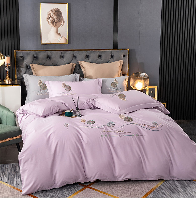 昊翔2024款澳棉水洗棉轻奢风刺绣款四件套森林派对浅紫