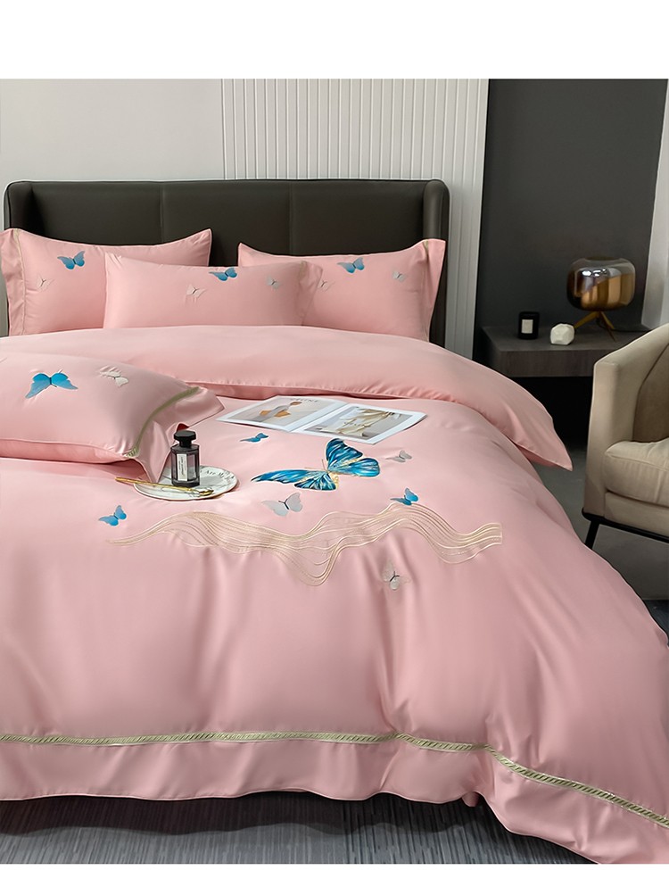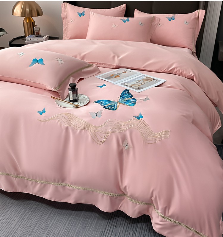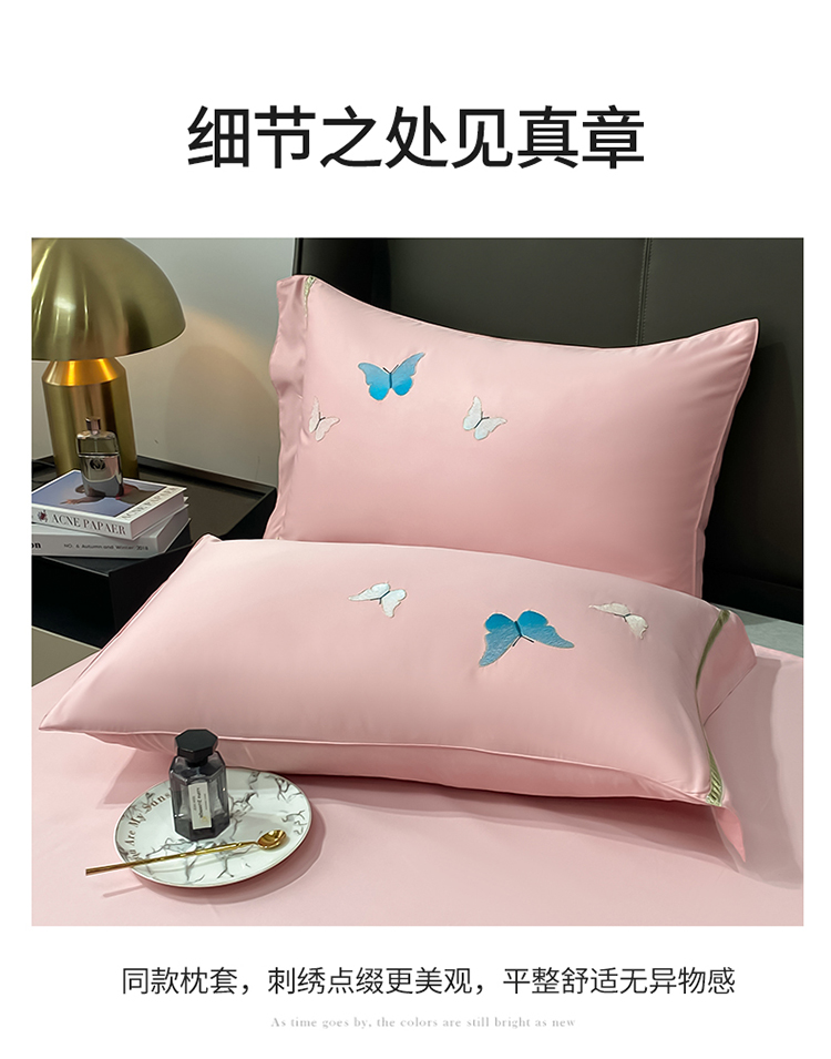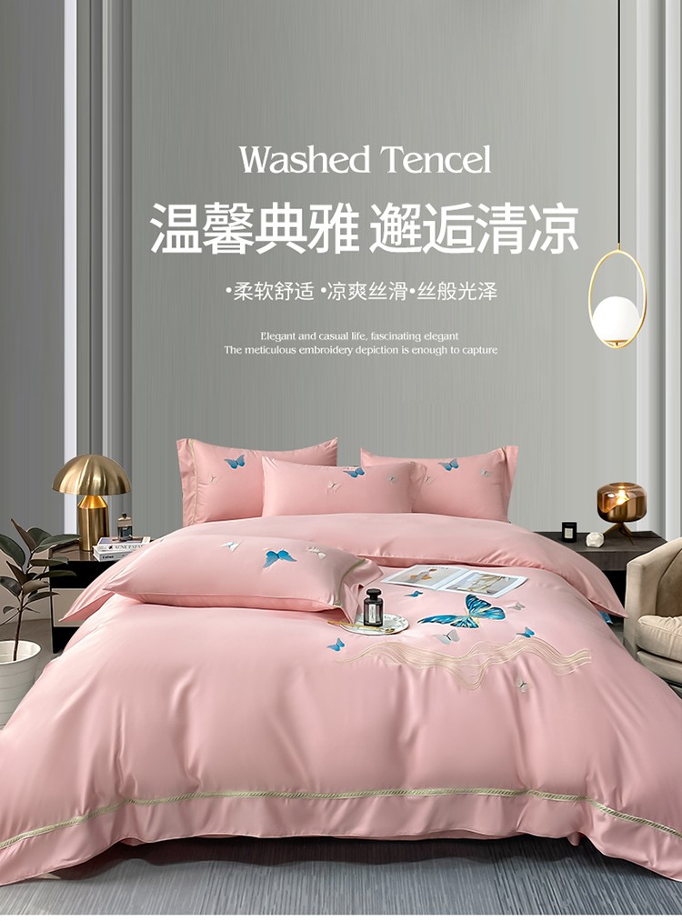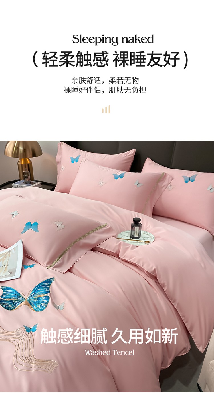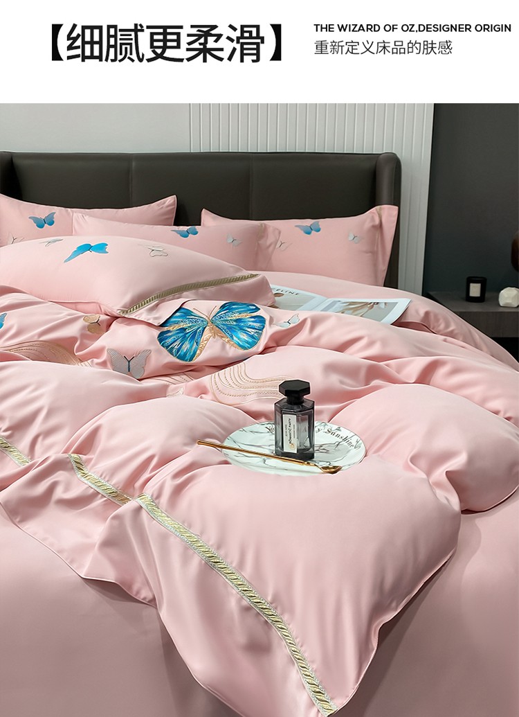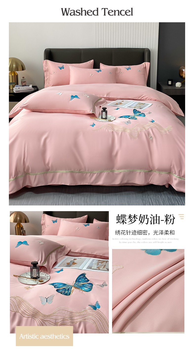 眠帛家居 2022新款水洗天丝四件套蝶梦系列 蝶梦奶油粉