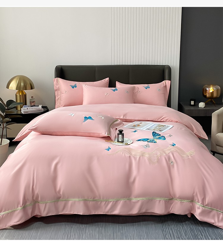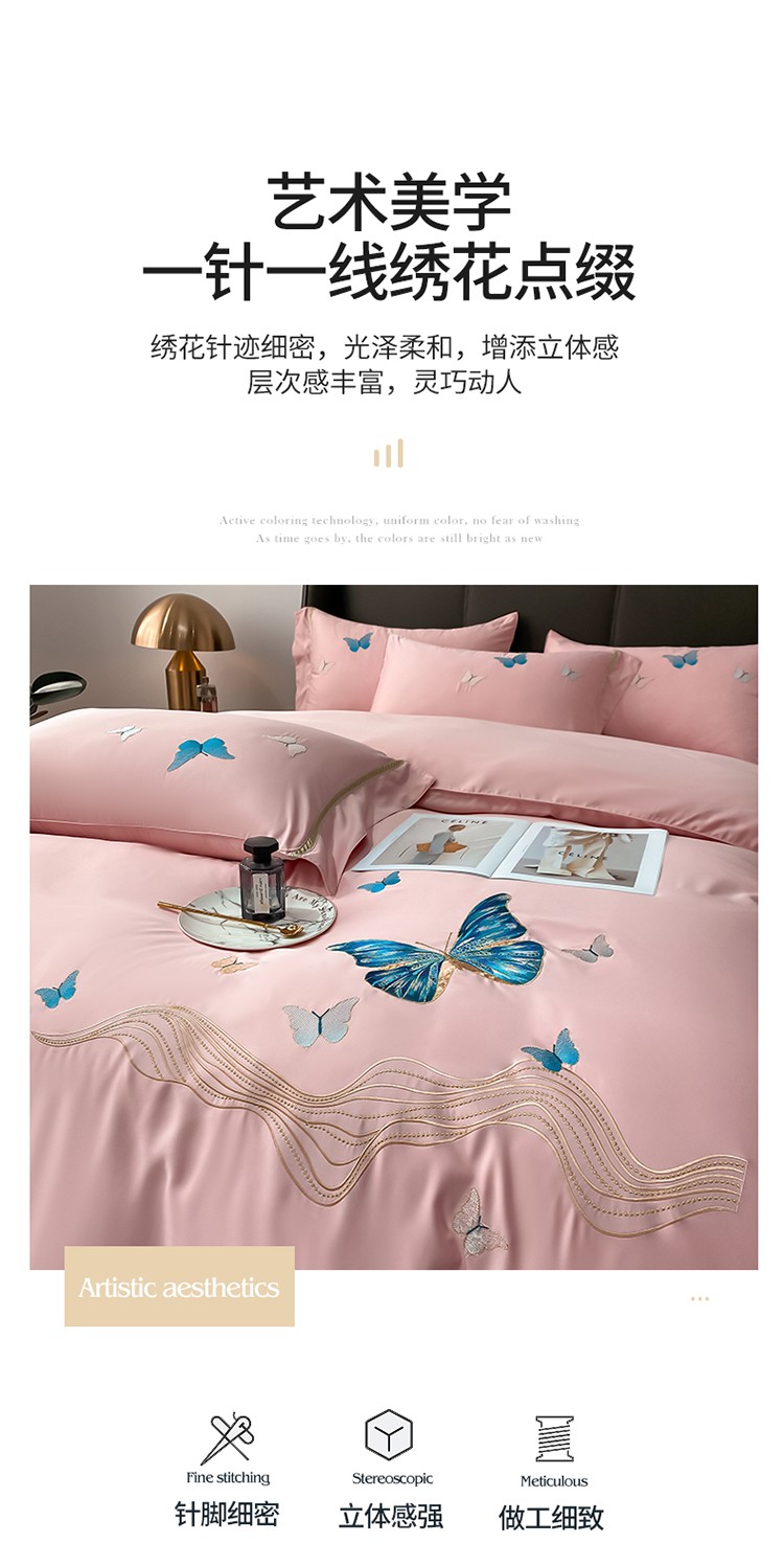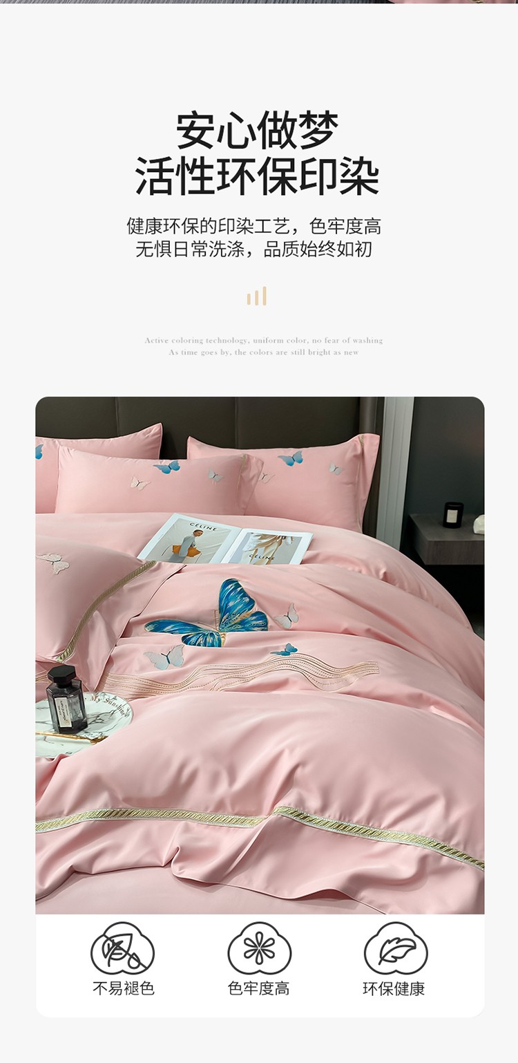 总眠帛家居2022新品60支兰精天丝气质轻奢绣花四件套-盛夏,盛夏-粉,盛夏-蓝,盛夏-绿