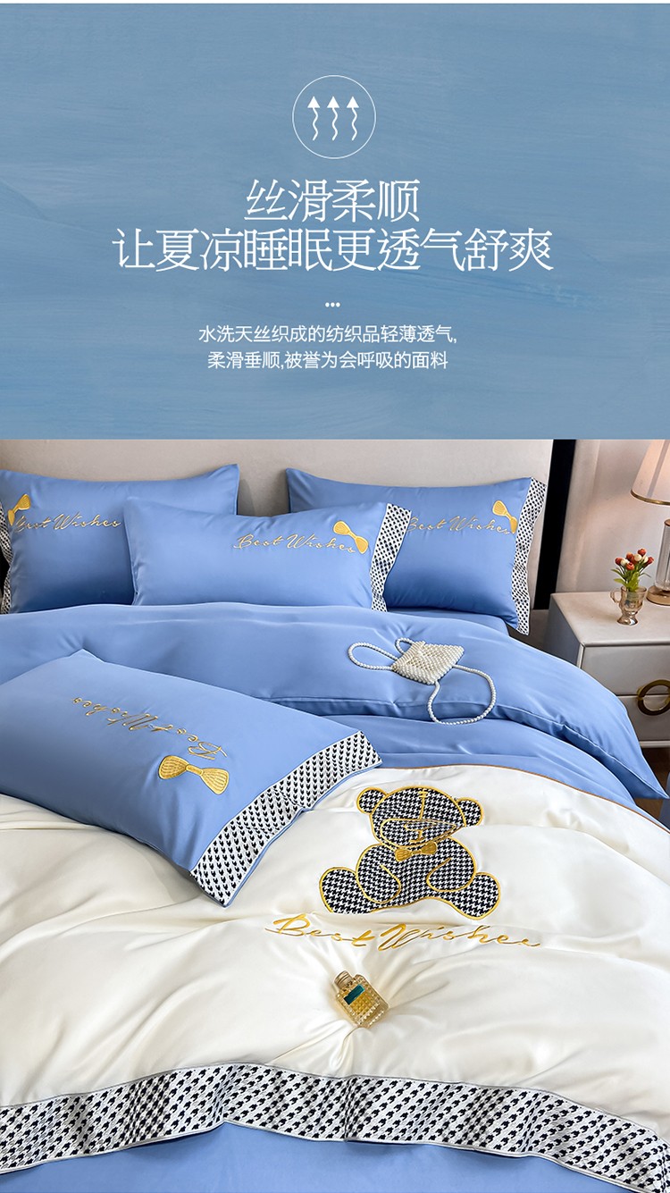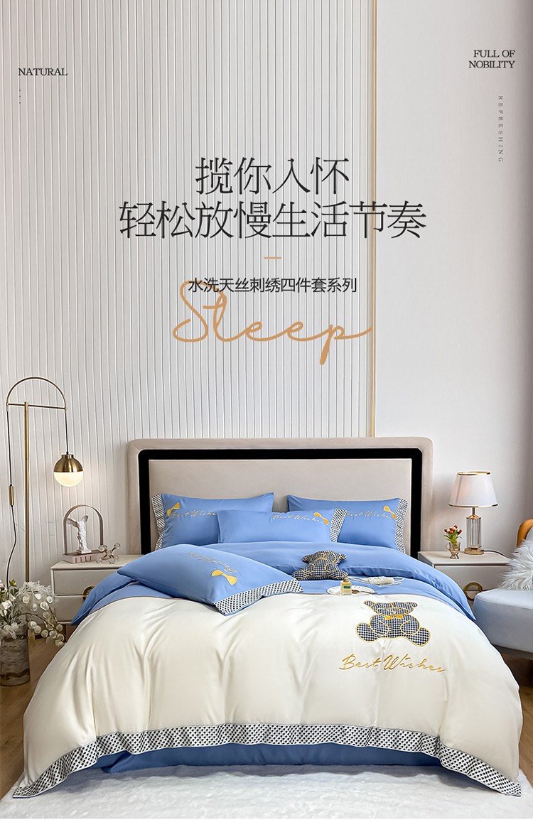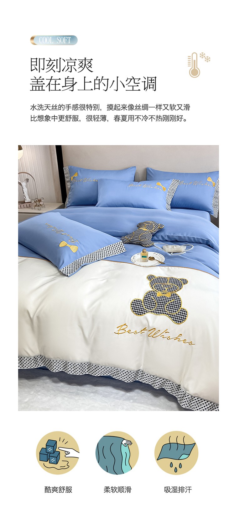 商品名称:眠帛家居 2022新款水洗天丝四件套元气熊系列 元气熊-蓝