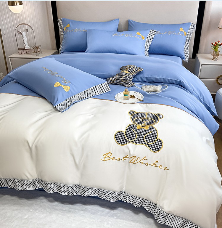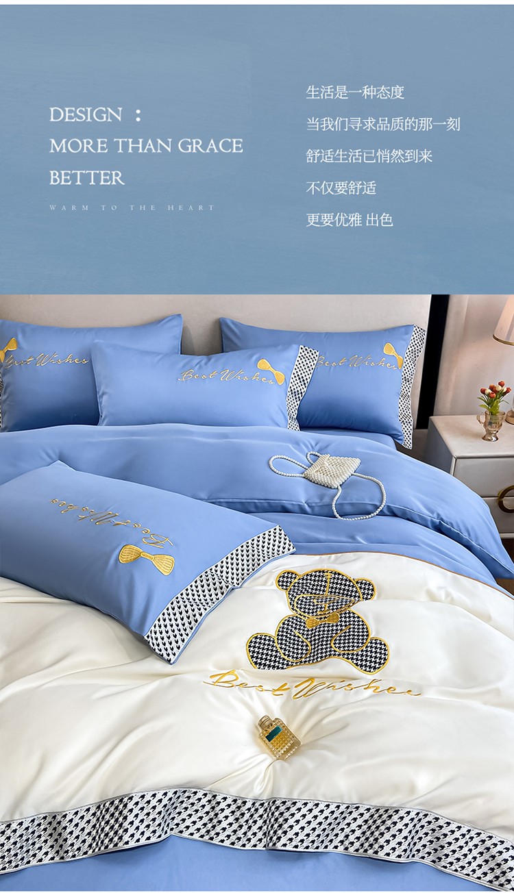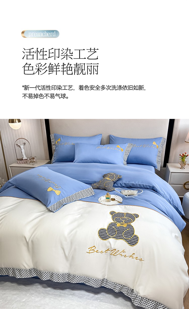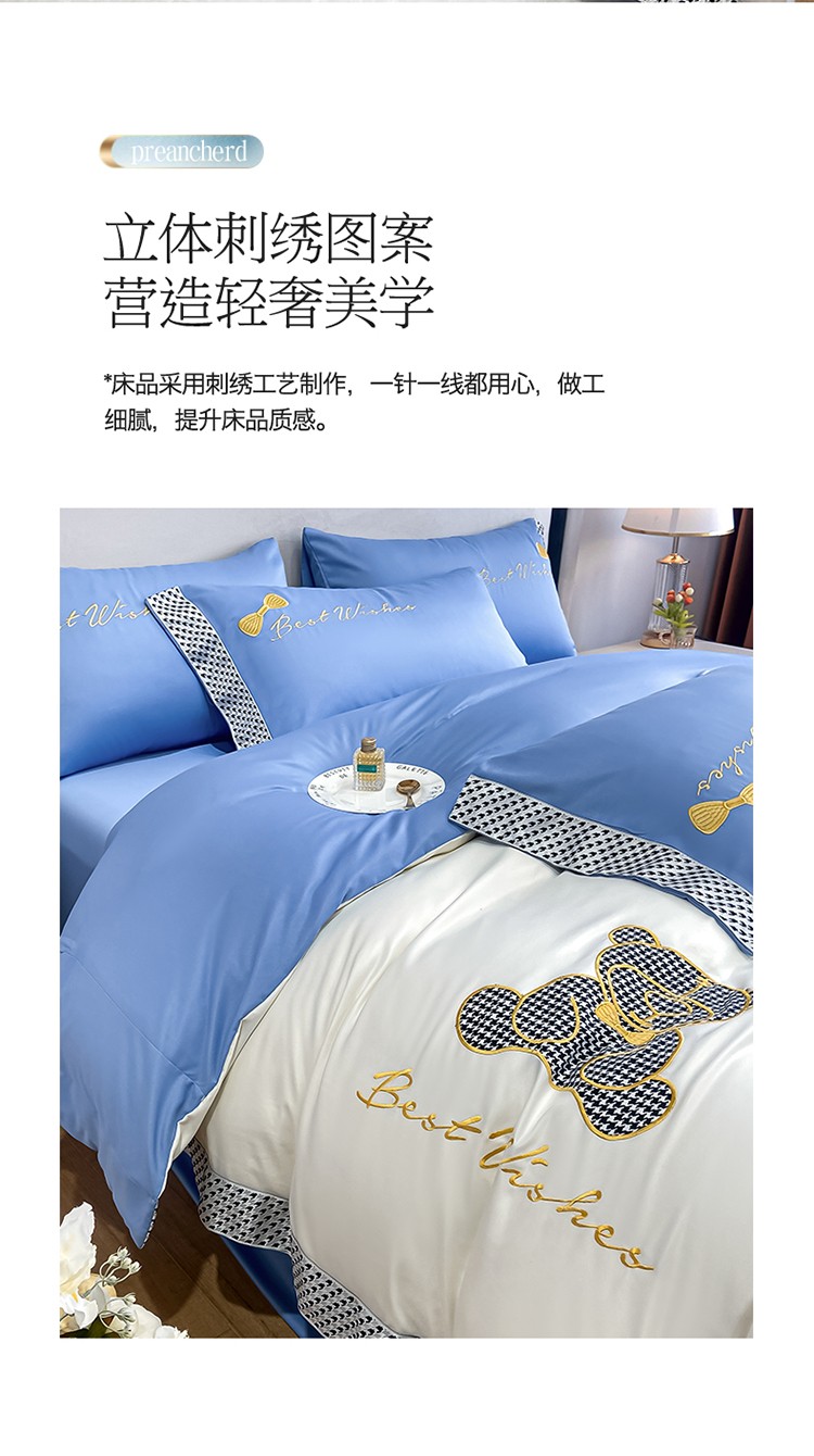 商品名称:眠帛家居 2022新款水洗天丝四件套元气熊系列 元气熊-蓝