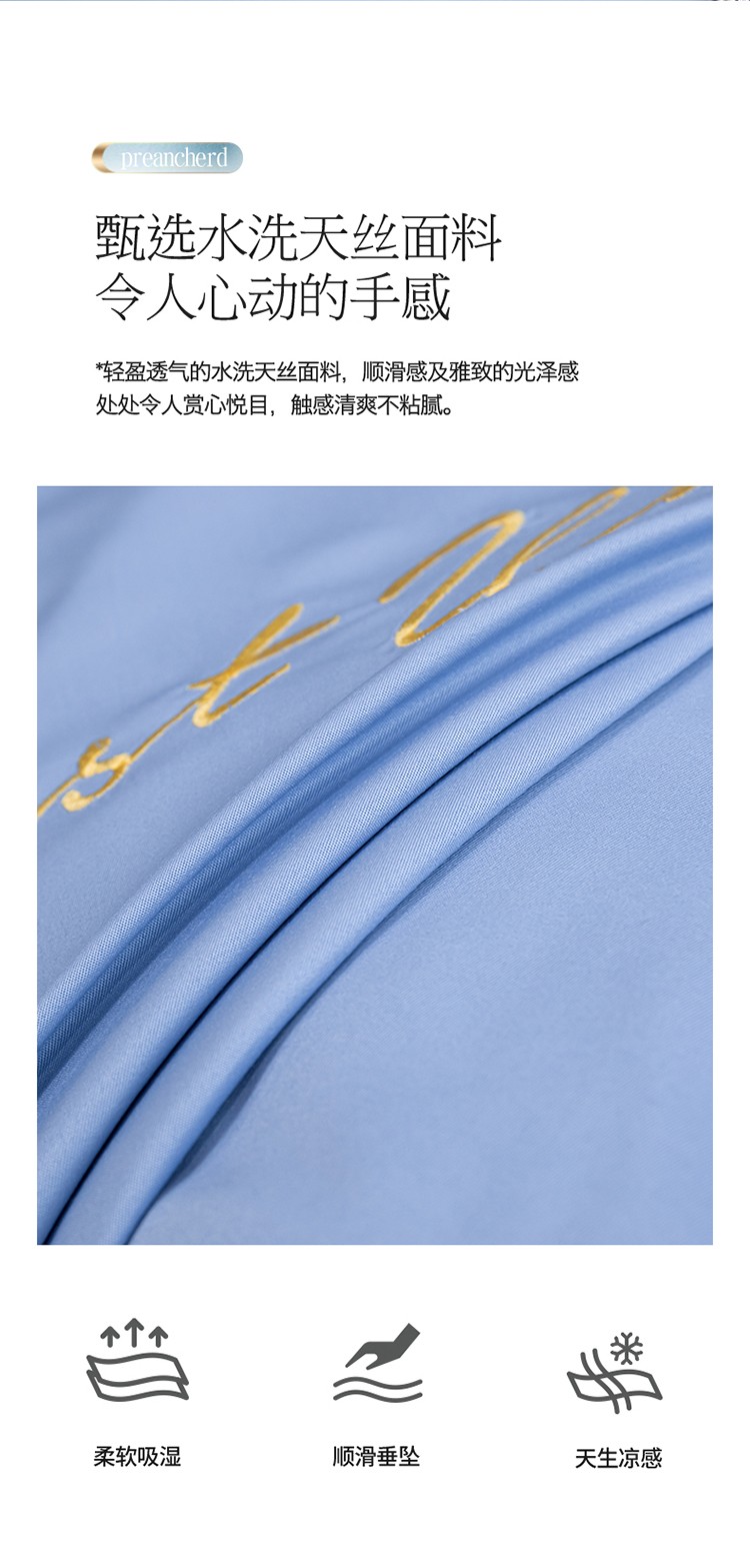 眠帛家居 2020全棉绣花小清新四件套 伊凌浅石蓝,伊凌浅石蓝