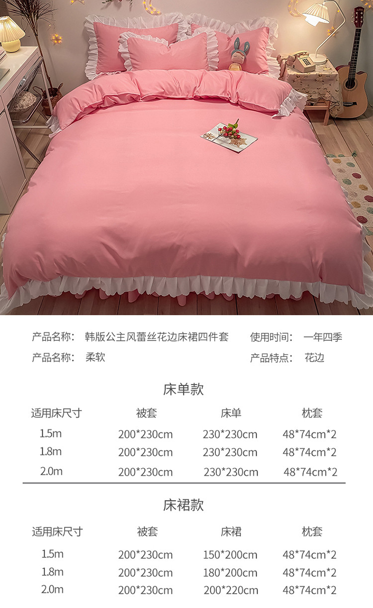 (总)艺玲 2022新款韩版公主风蕾丝花边四件套