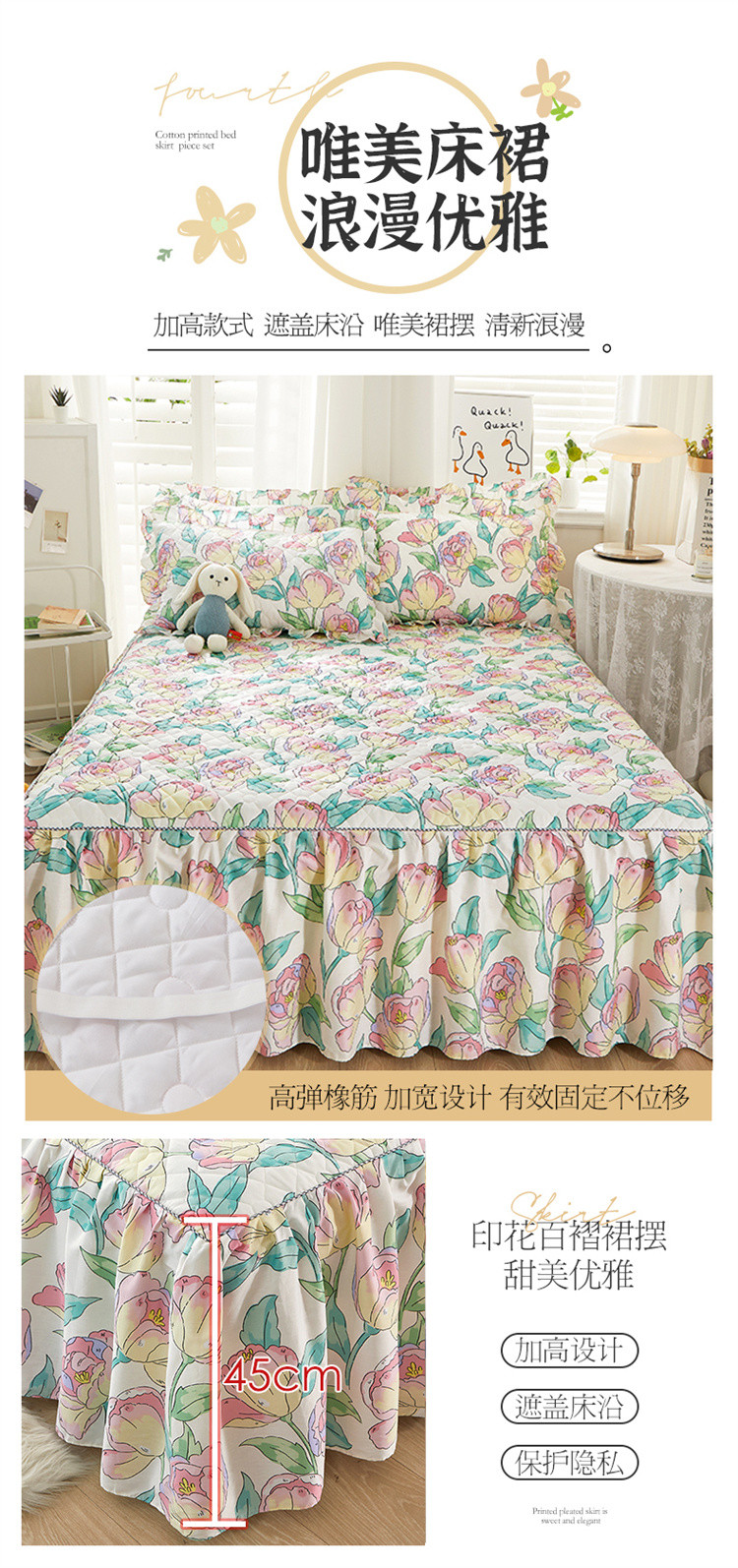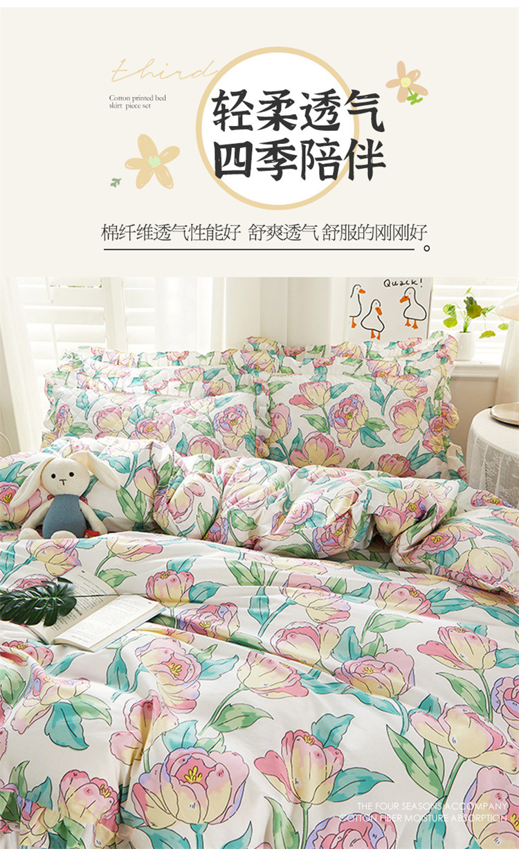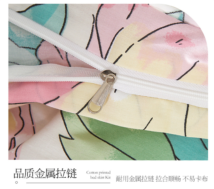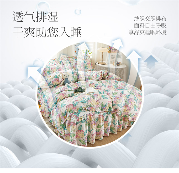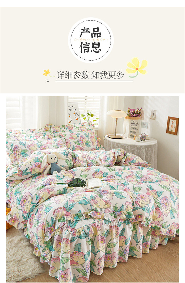 当前位置: 91家纺网 > 商品网购 > 床品套件 > 四件套 > 全棉普通四件套 > 十个点 2022新款全棉夹棉印花床裙四件套 花影