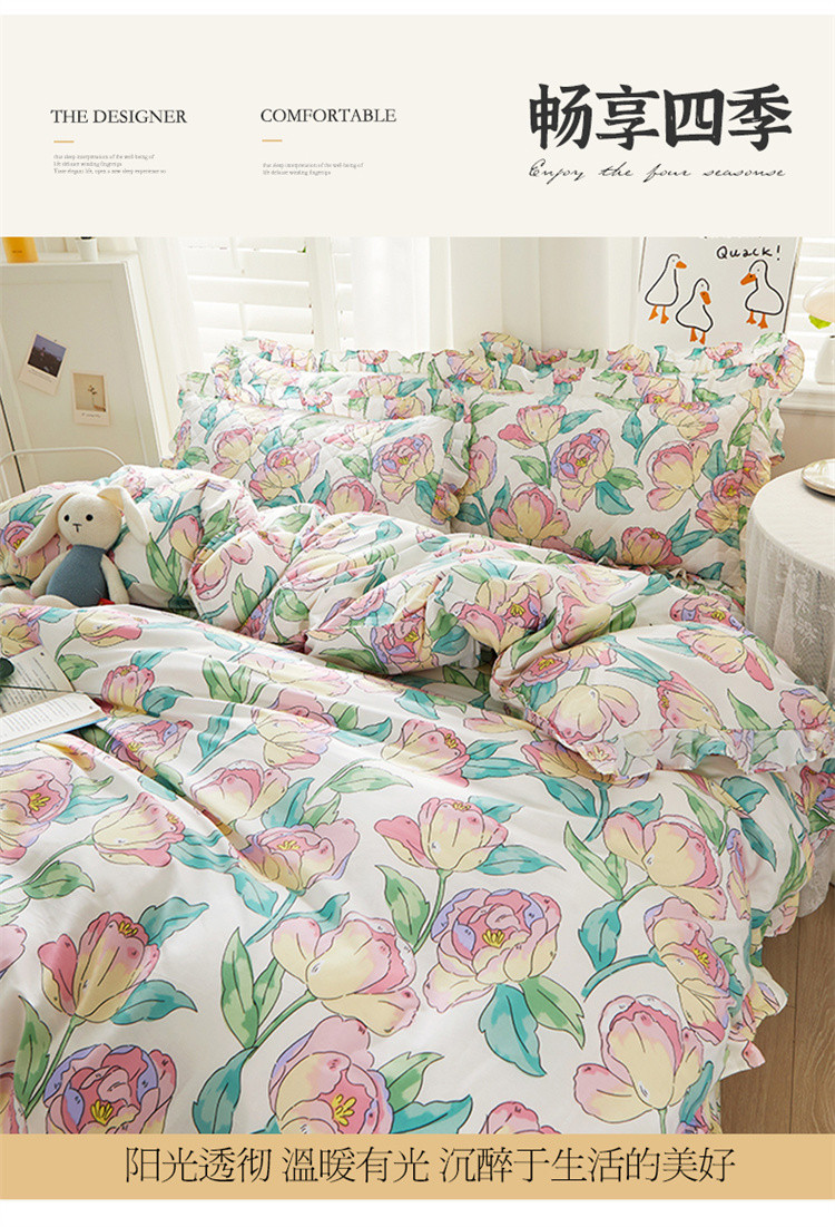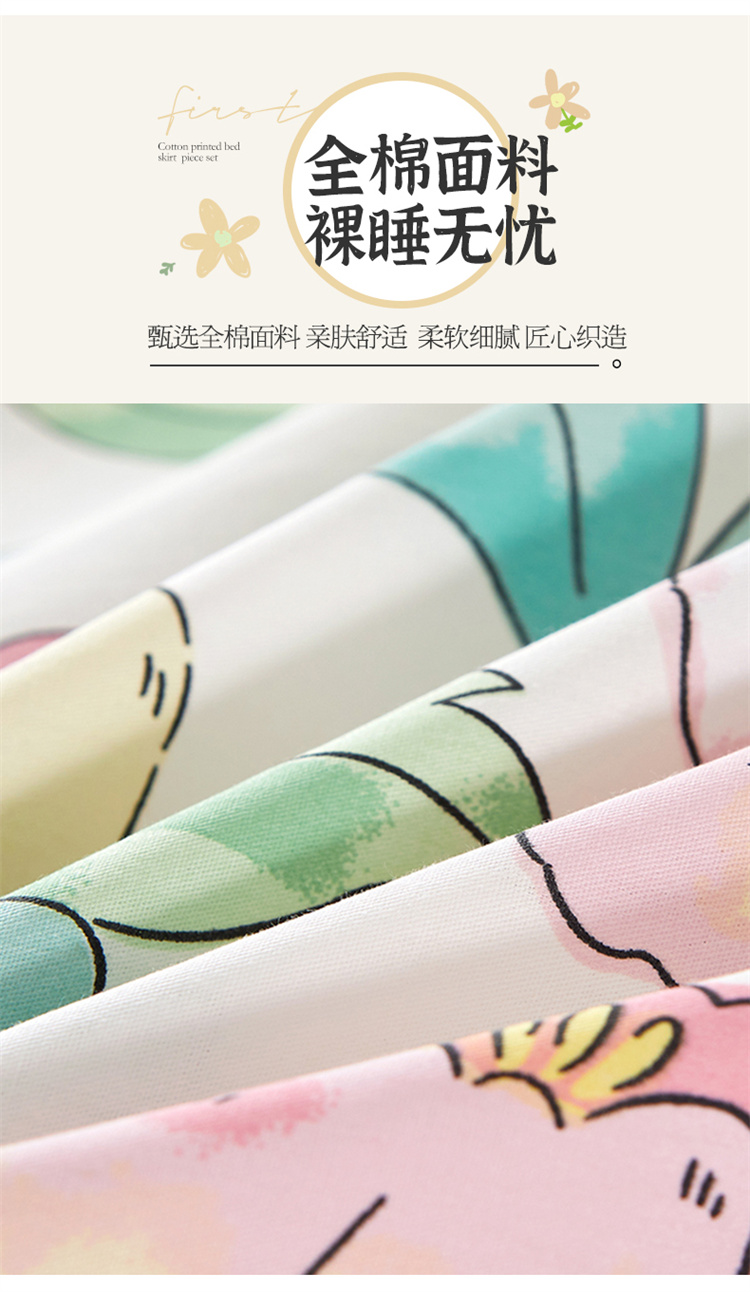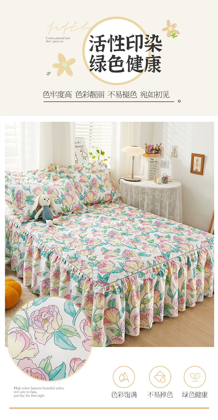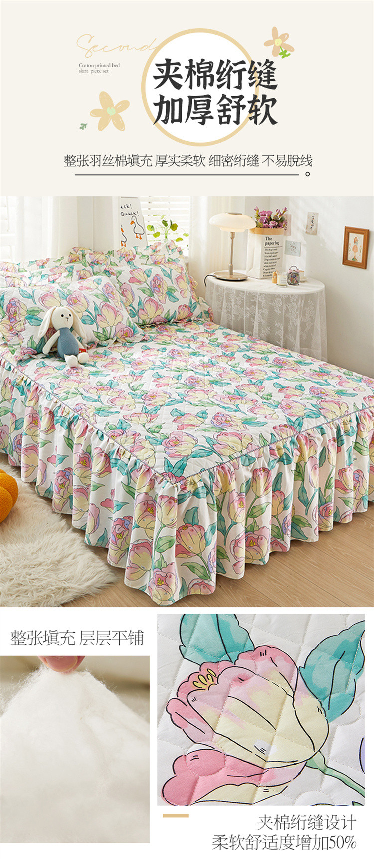 当前位置: 91家纺网 > 商品网购 > 床品套件 > 四件套 > 全棉普通四件套 > 十个点 2022新款全棉夹棉印花床裙四件套 花影
