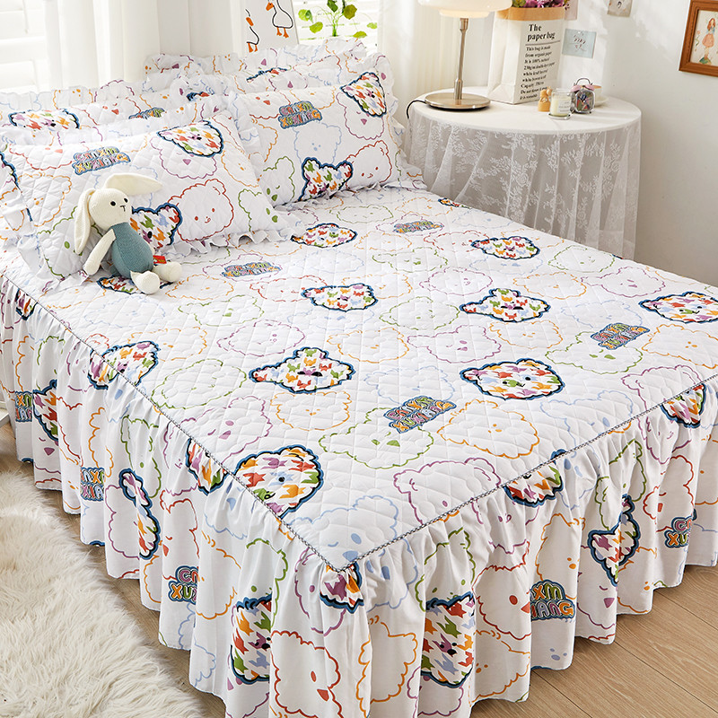 (总)十个点家纺 2025新款加厚磨毛木棉床裙三件套-绫罗系列,爱意萌萌,贝贝熊,格桑花,海棠花,蝴蝶兔,花千骨,米兰,木棉花,山茶花,同心结,心相印,心愿-米
