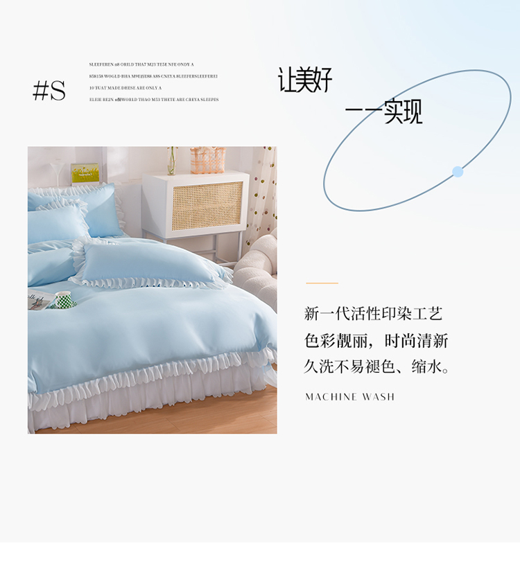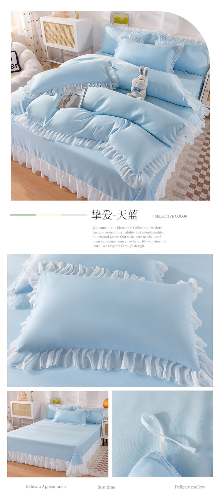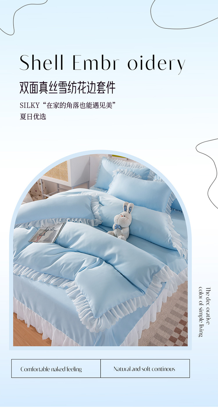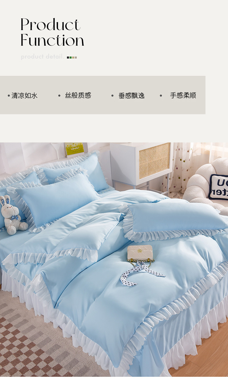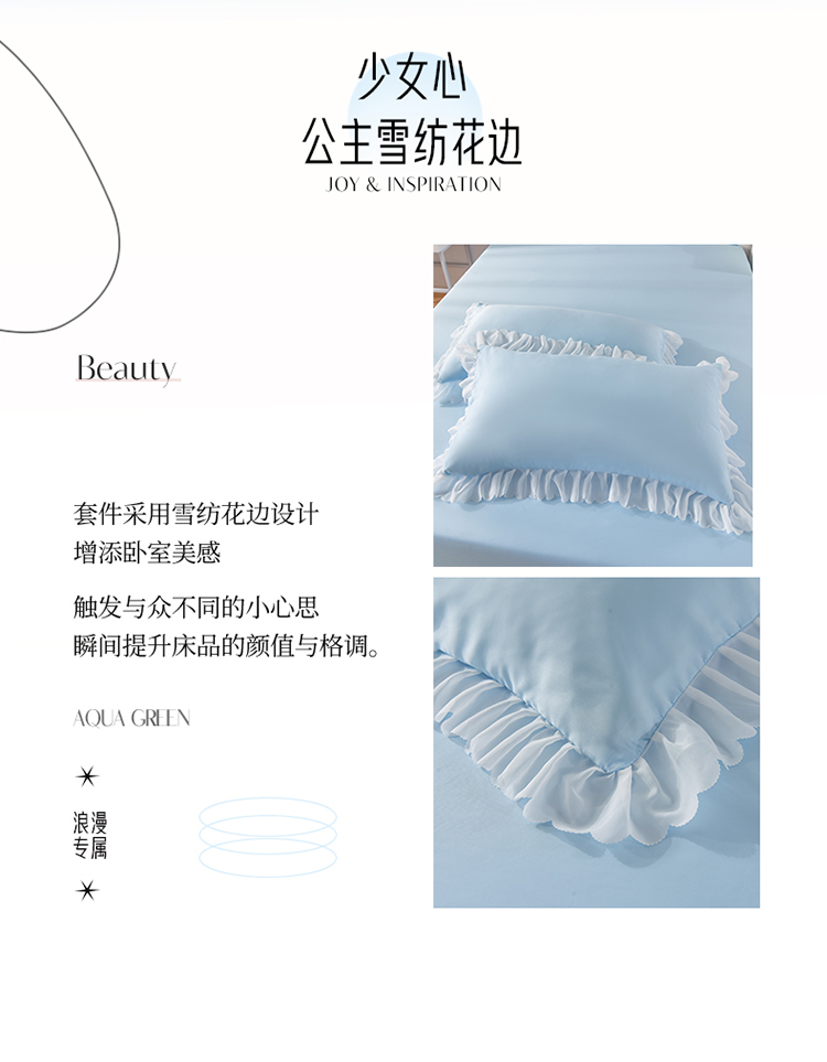 (总)梦之岛 2022新款泡泡亲肤公主风夏被四件套,淡黄绿,蜜桃粉,奶油黄,浅水绿,天空蓝