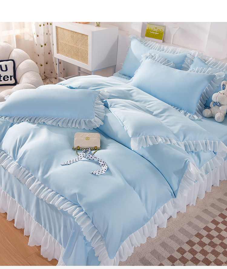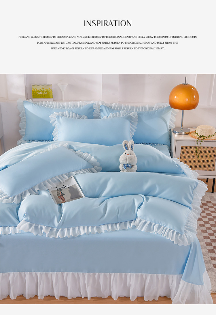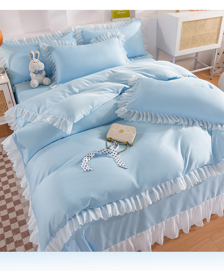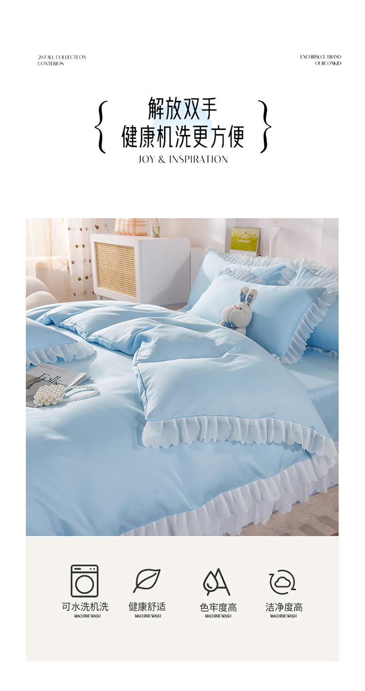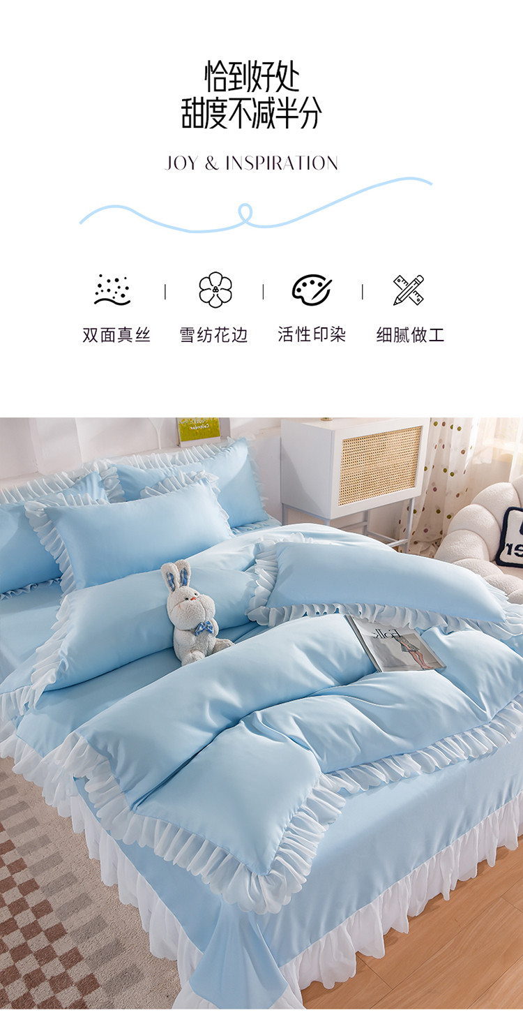 (总)梦之岛 2022新款泡泡亲肤公主风夏被四件套,淡黄绿,蜜桃粉,奶油黄,浅水绿,天空蓝