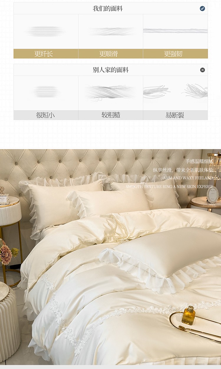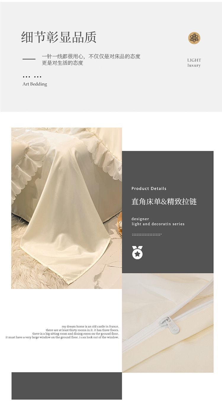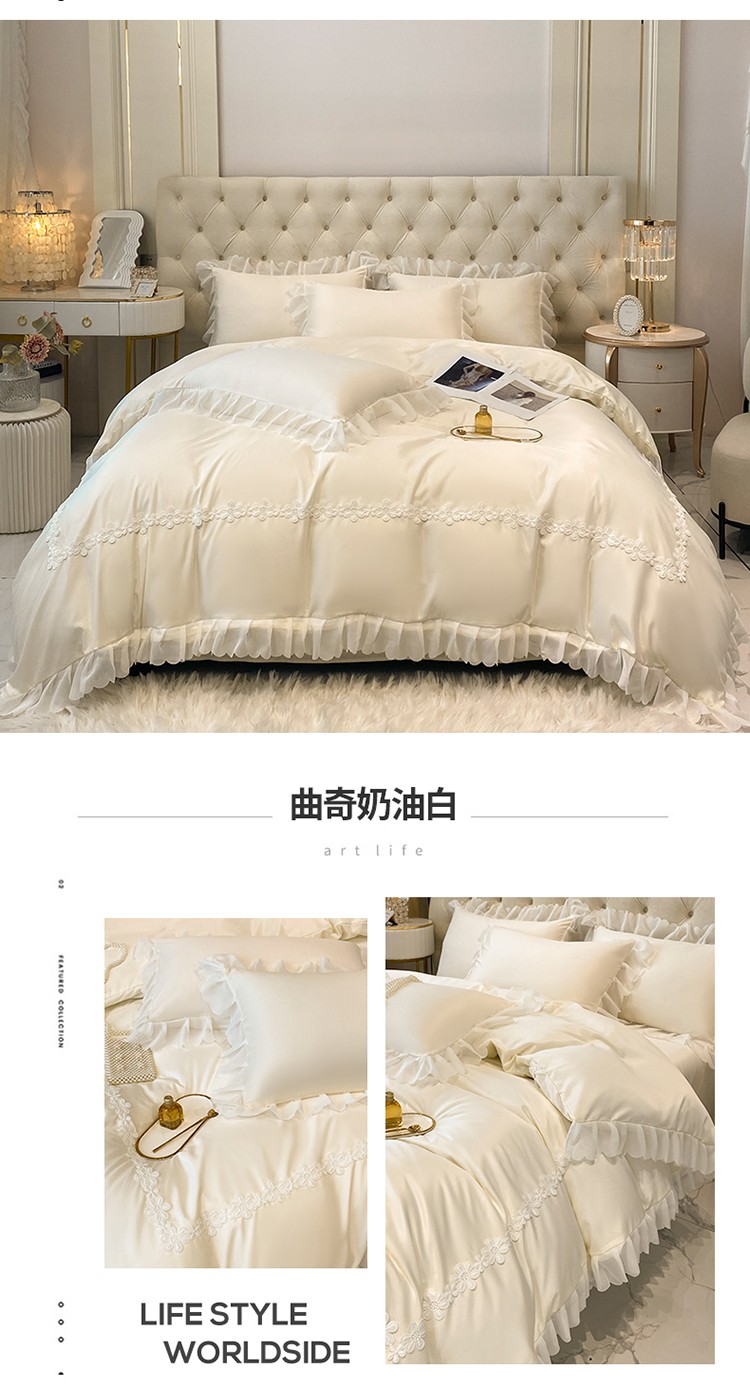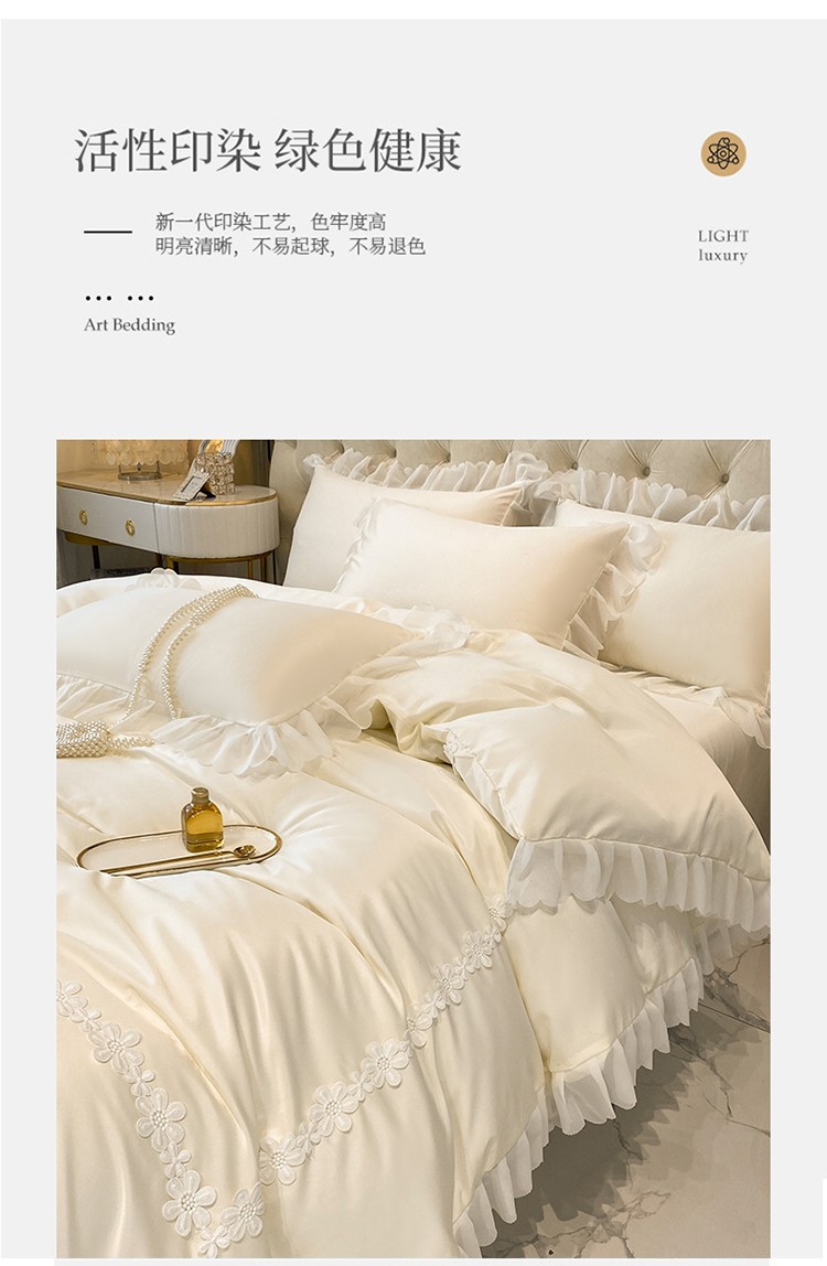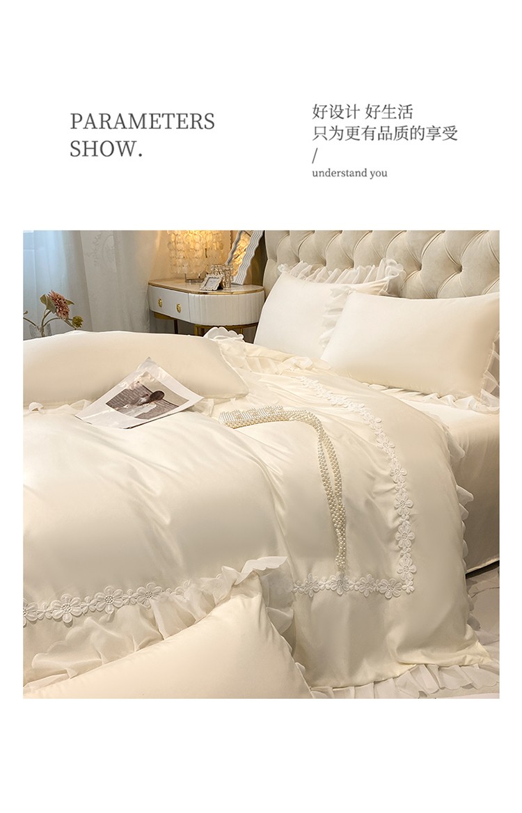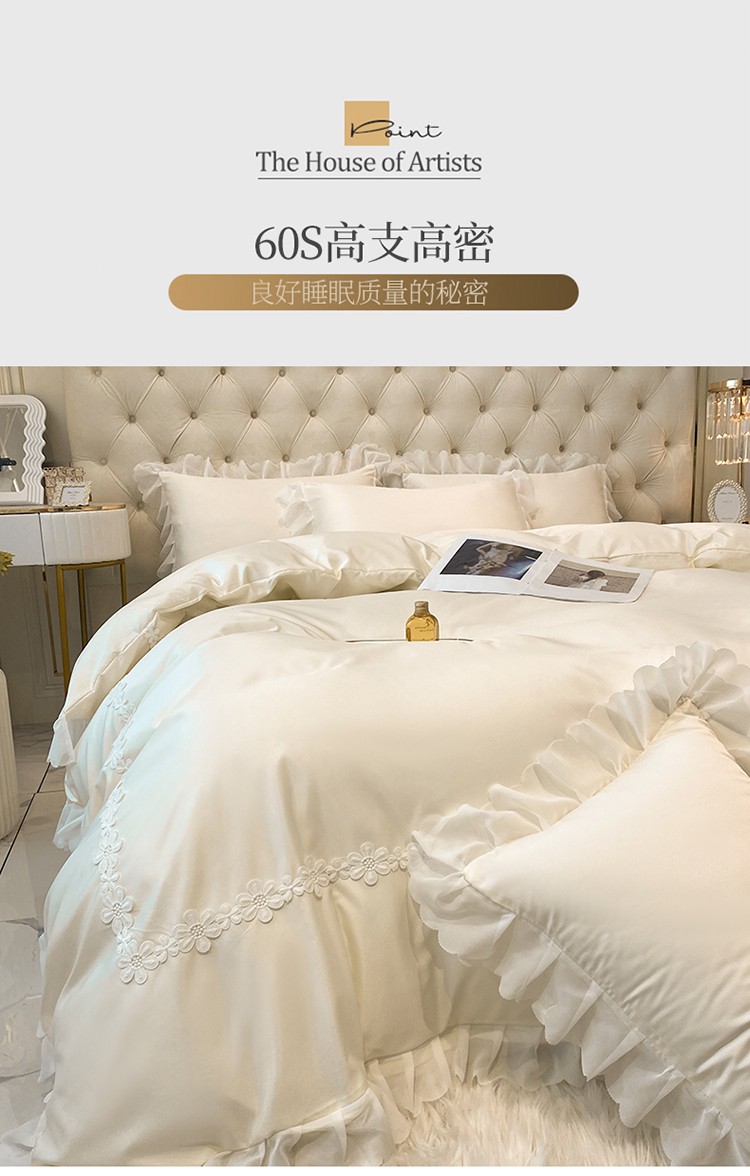 (总)狂想家 2025高定蕾丝糯小棉安妮系列四件套,茶花粉,蜜桃粉,奶昔白,晴空兰