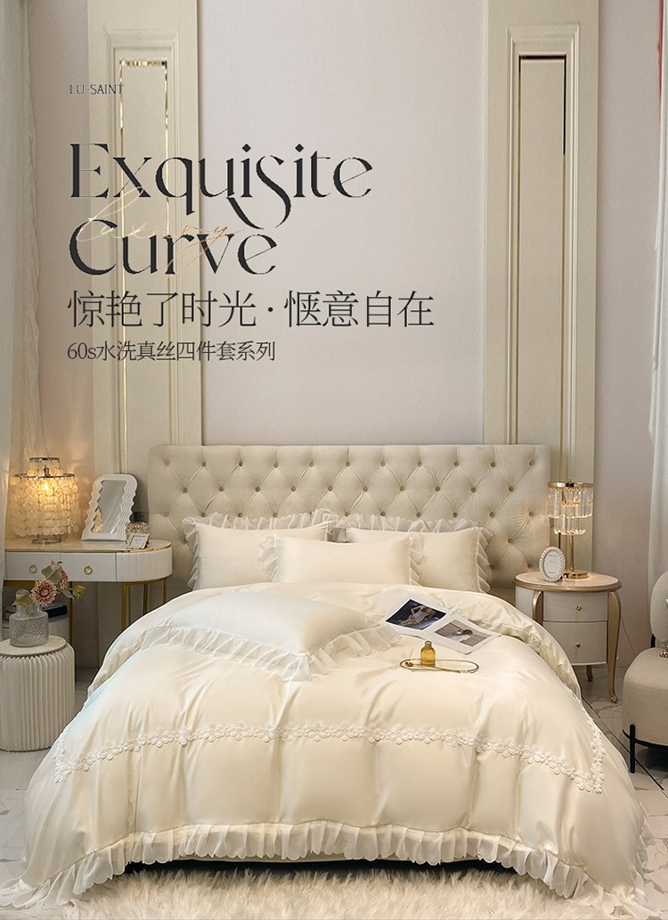 狂想家 2025新款曲奇水洗真丝系列四件套 曲奇奶油白