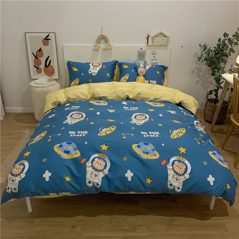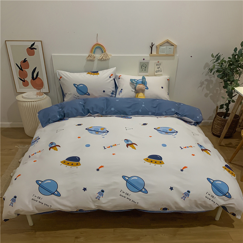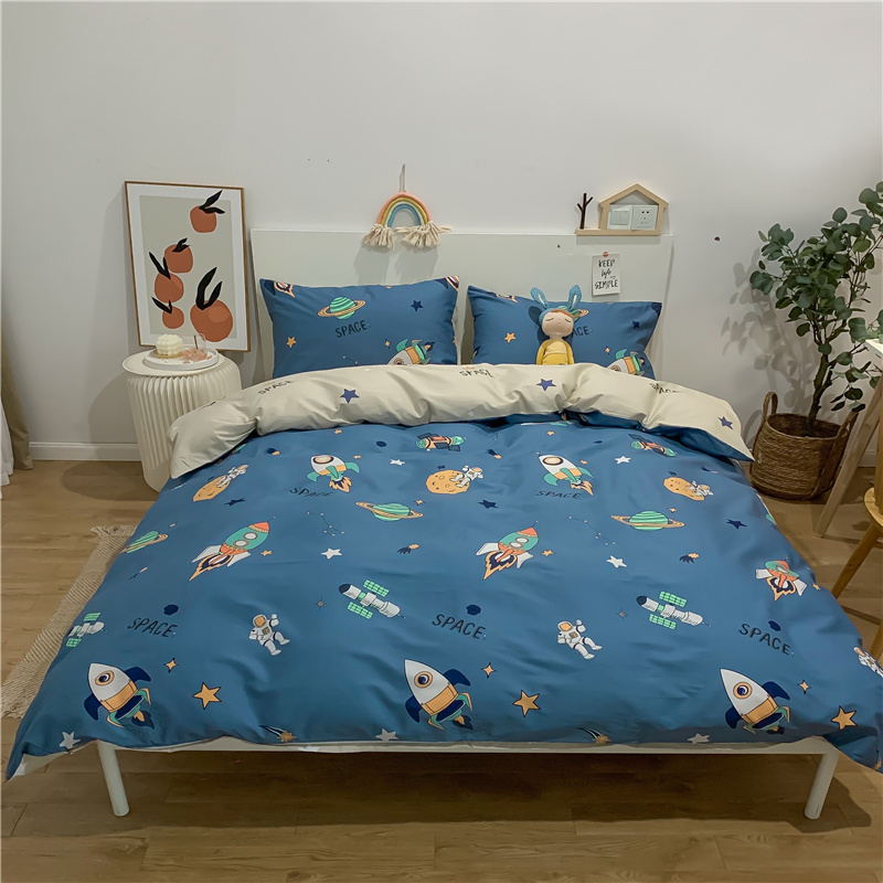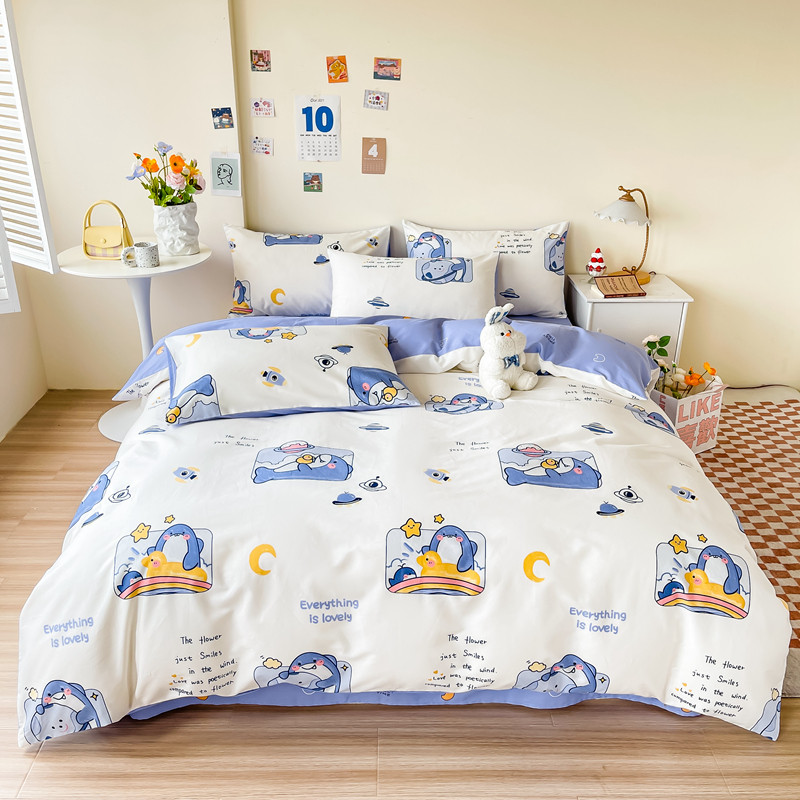 (总)西引力 2022新款全棉印花四件套,蓝色心情,小海豚,宇航员