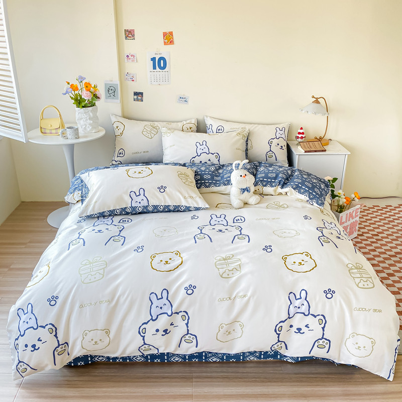 (总)西引力2023新款全棉AB版童趣印花套件系列四件套,布鲁斯,流金岁月,律动蓝,煤球,英伦蓝,英伦字母,云端