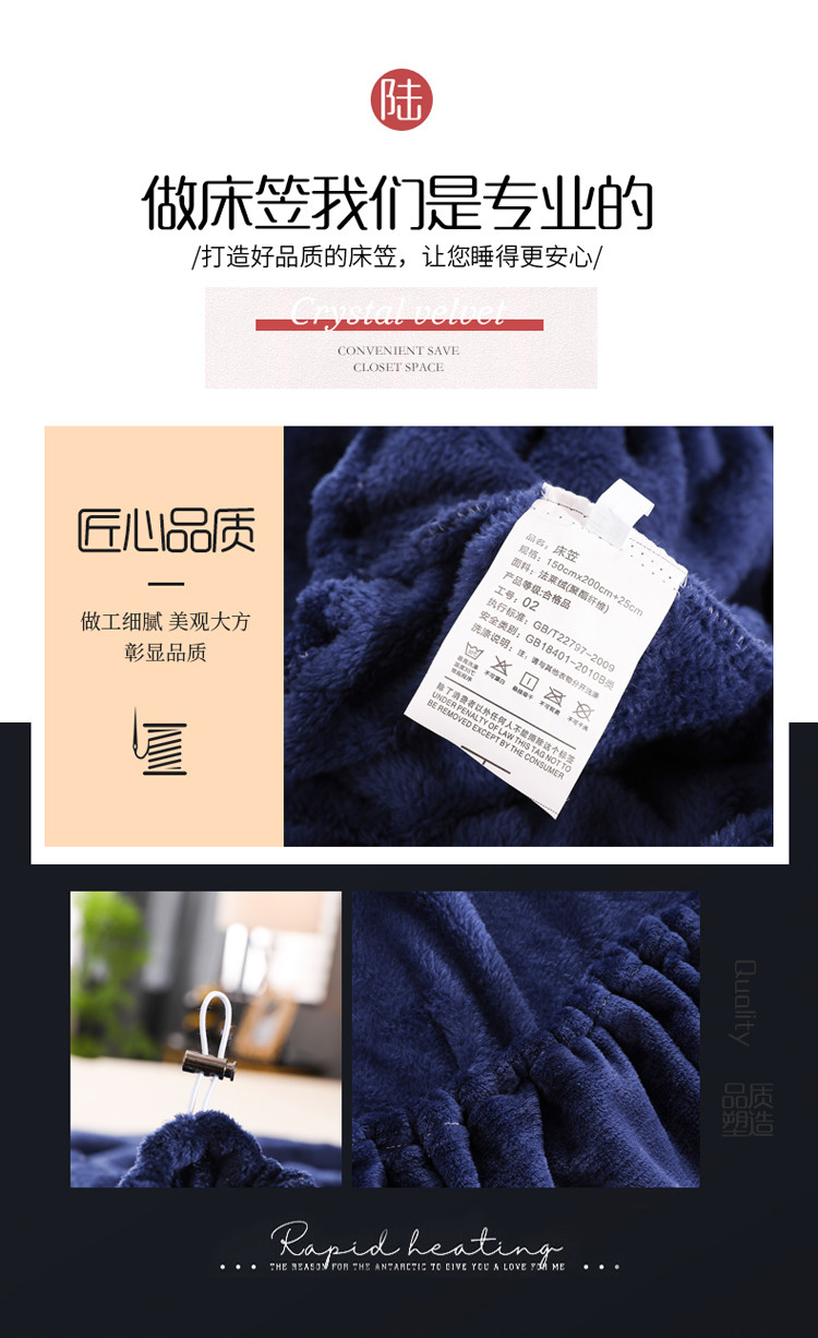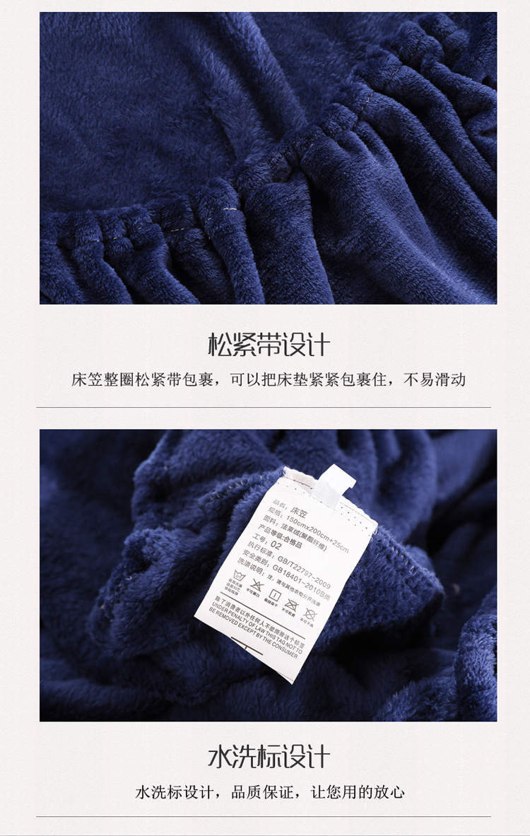 商品名称:简爱 2025新款双面绒纯色法莱绒单床笠 藏青