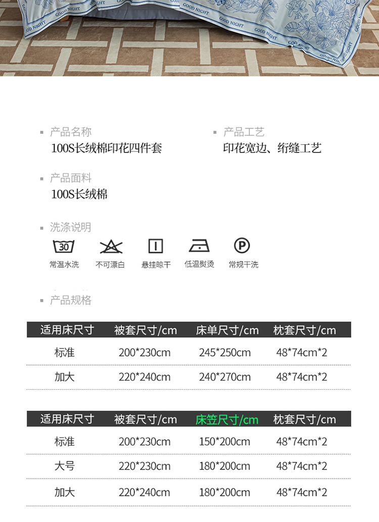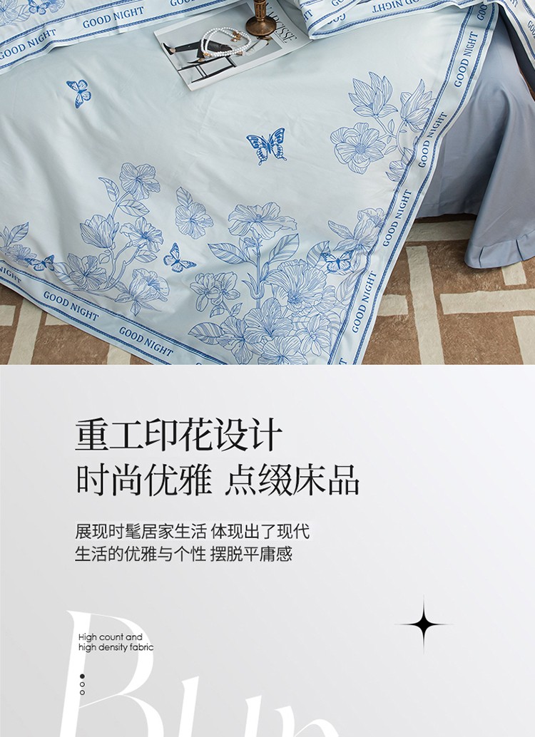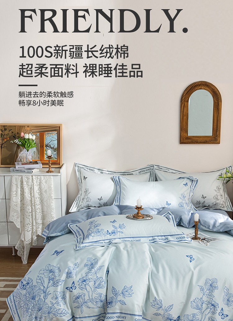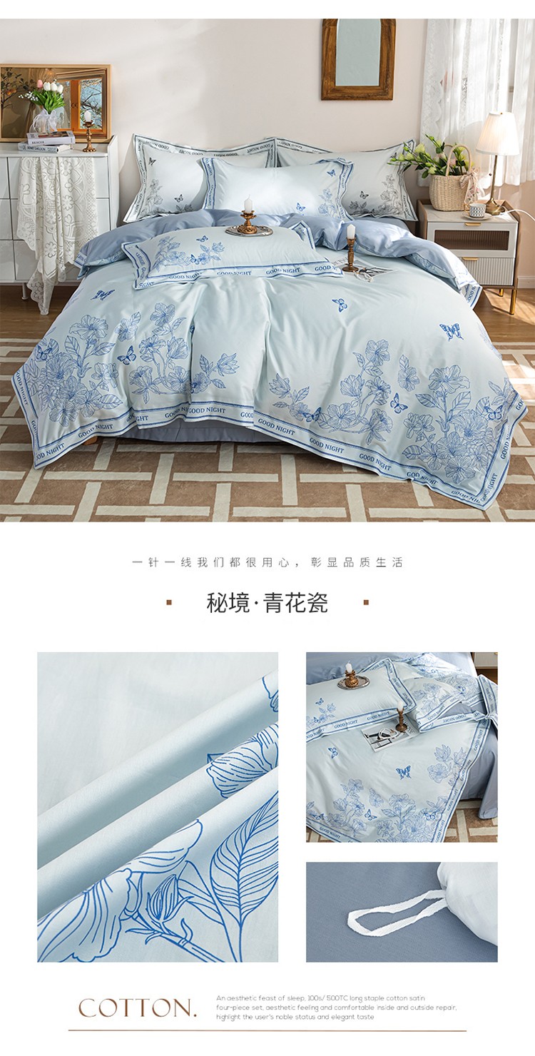 商品名称:安莱 2022新款100支长绒棉数码印花四件套-秘境 青花瓷