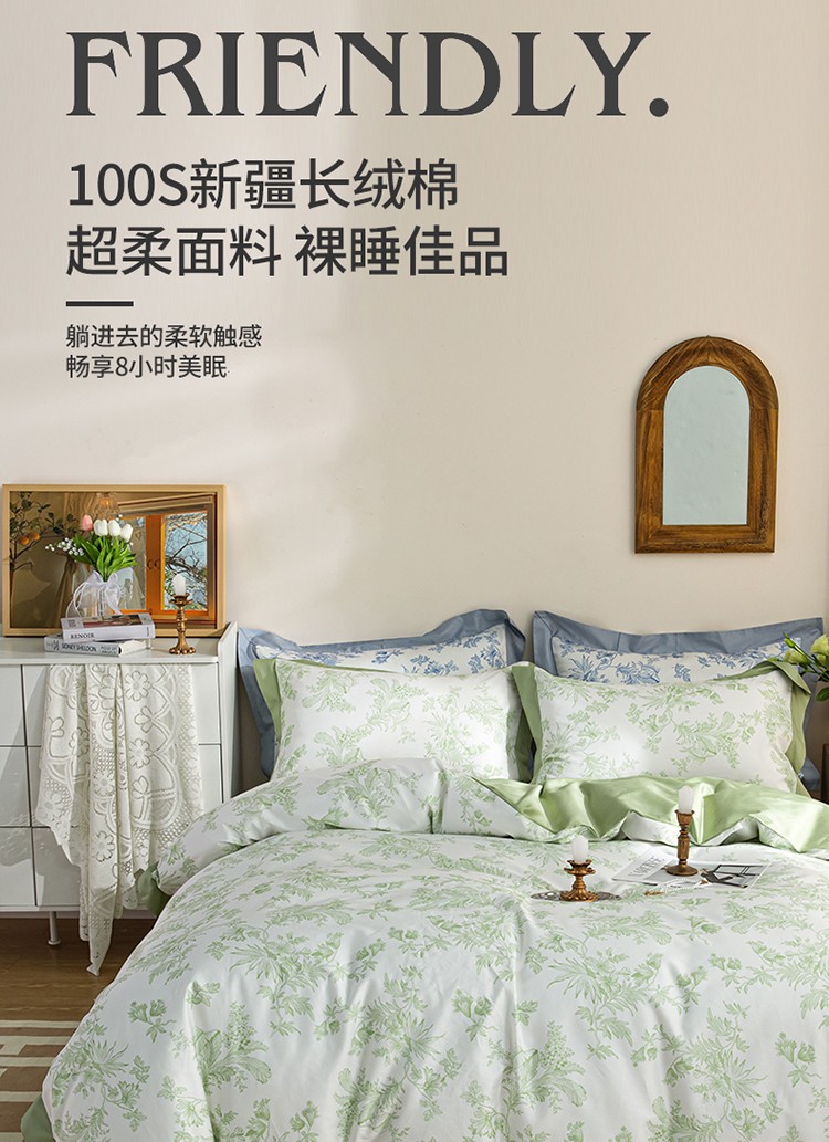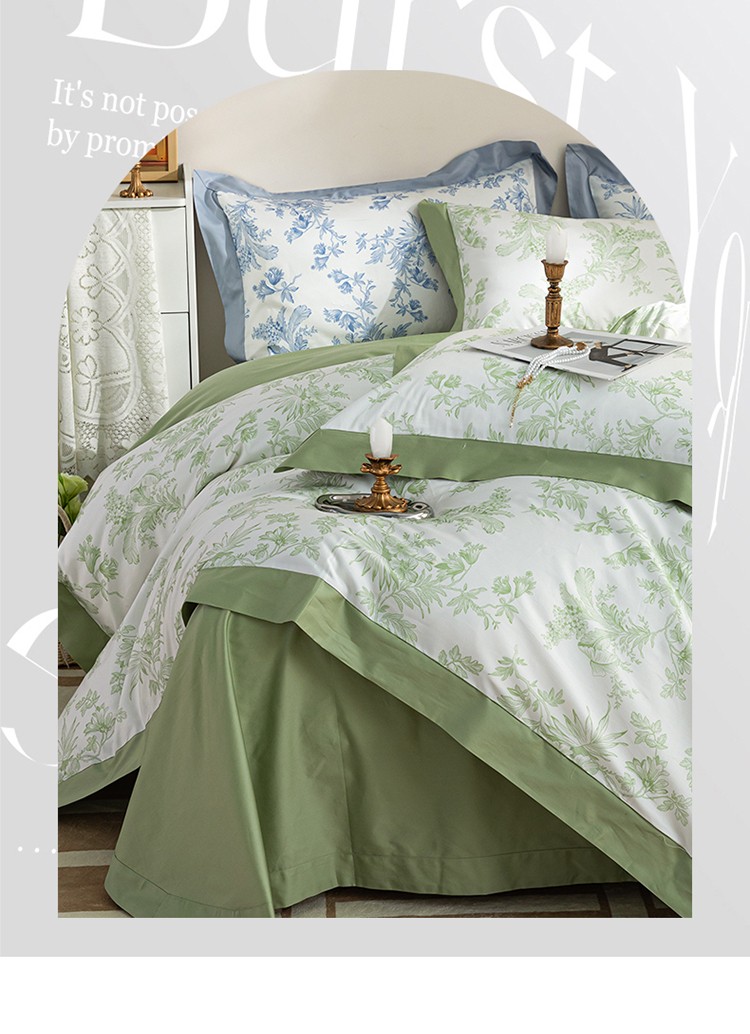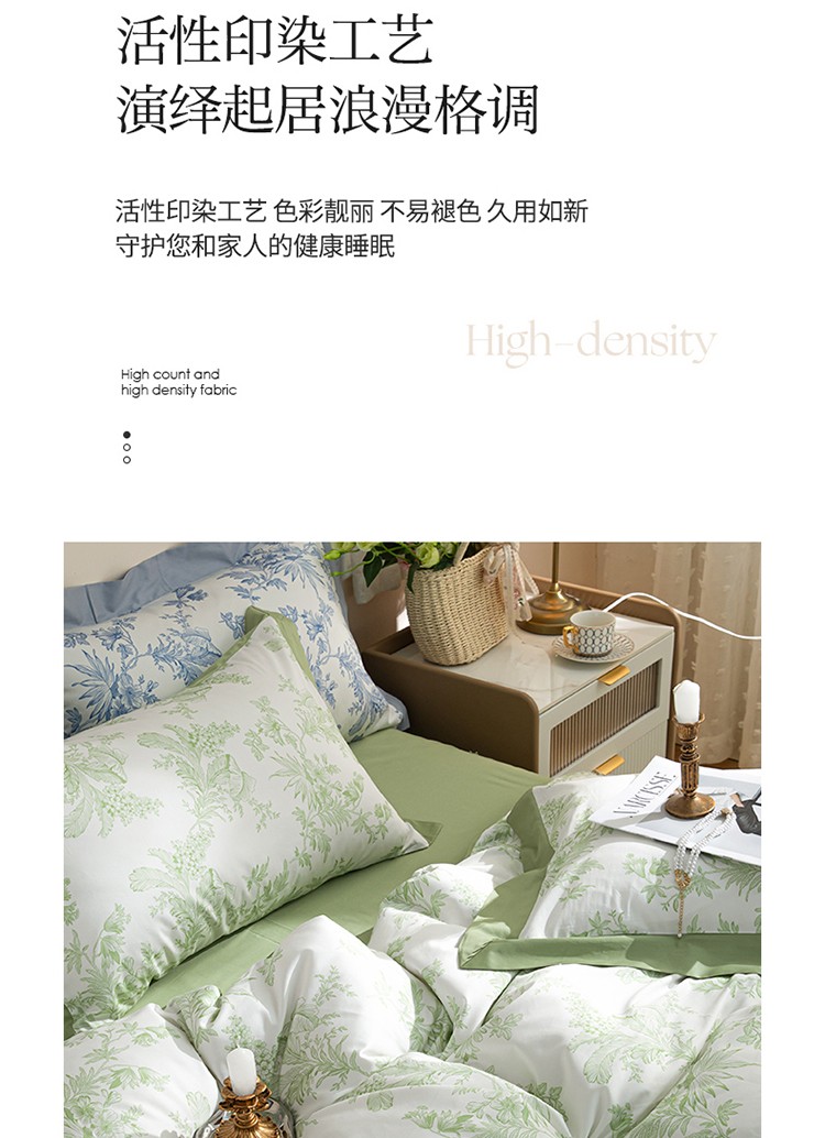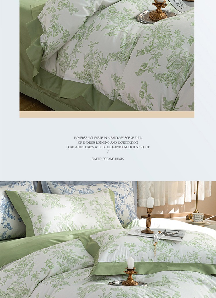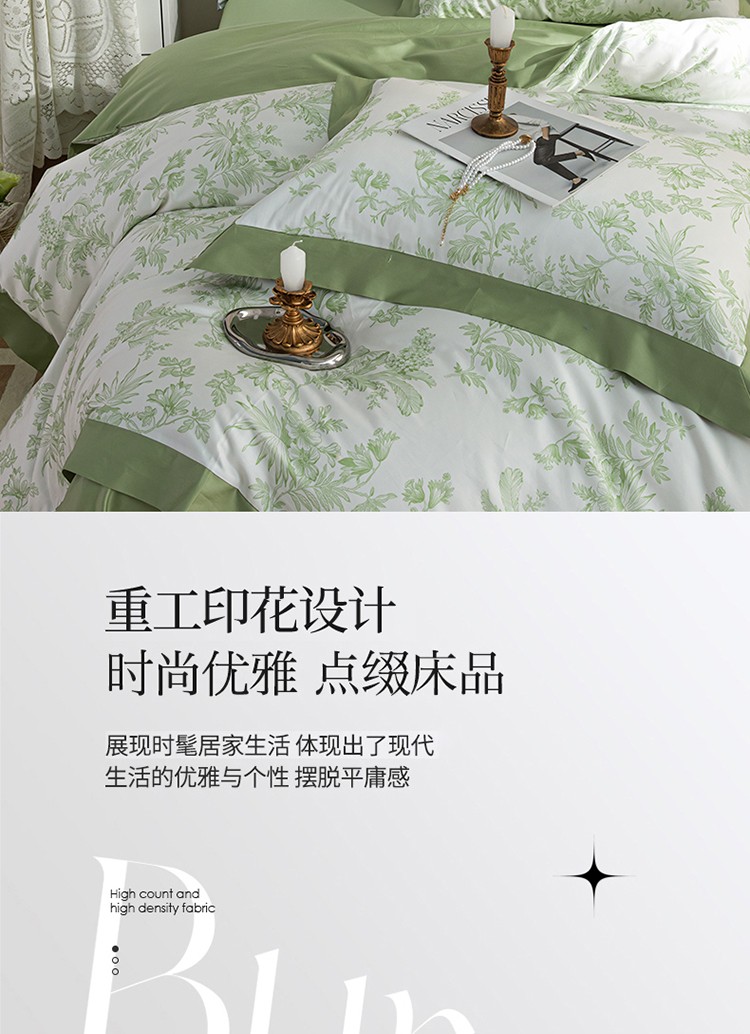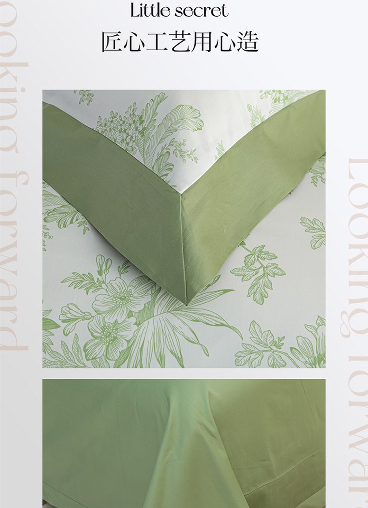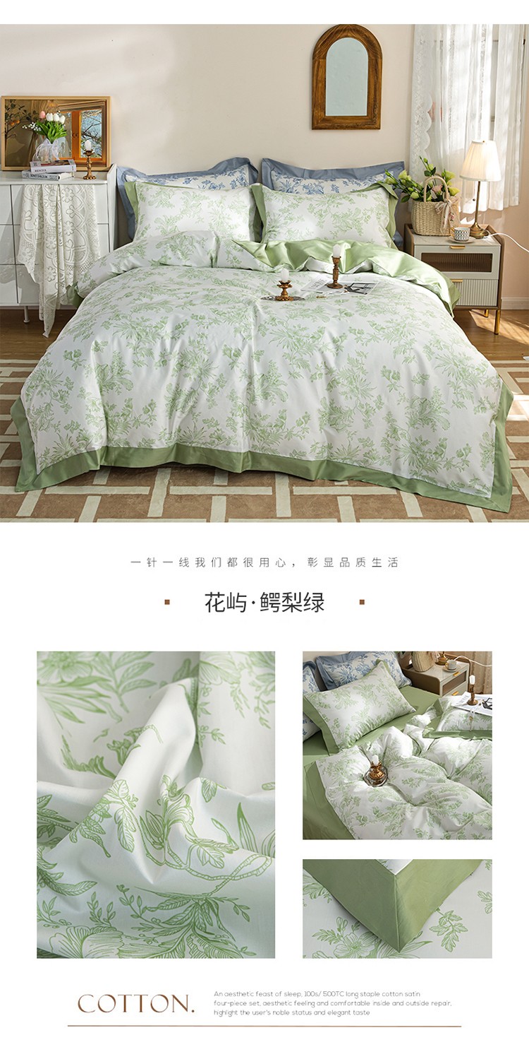 安莱 2022新款100支长绒棉数码印花四件套-花屿 鳄梨绿