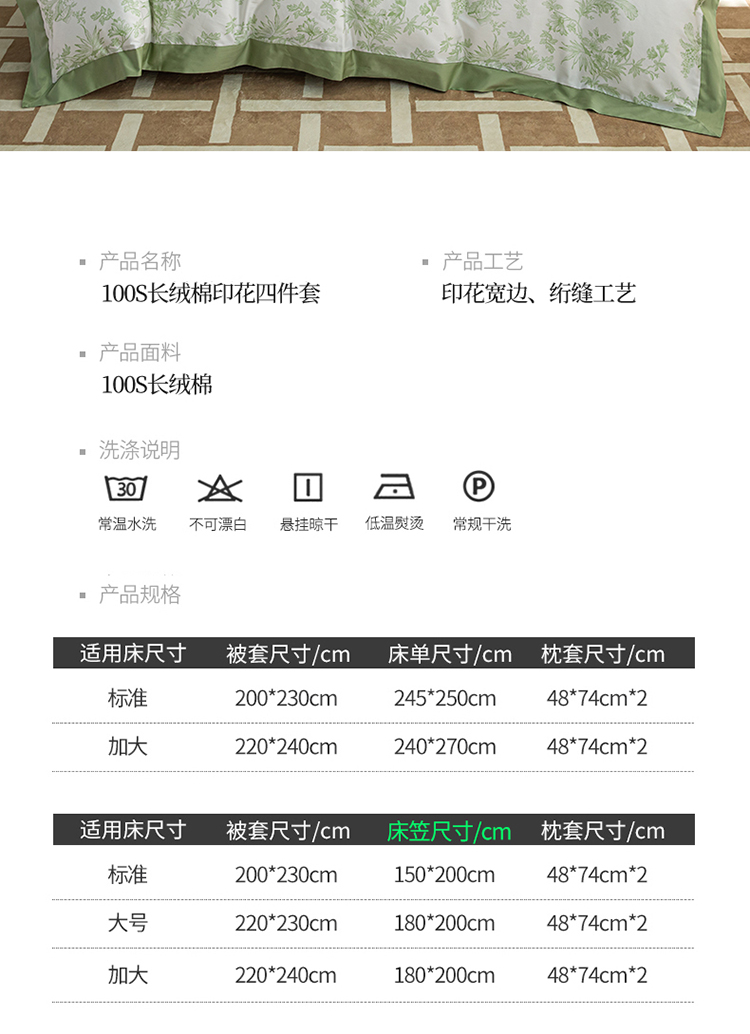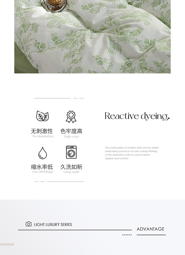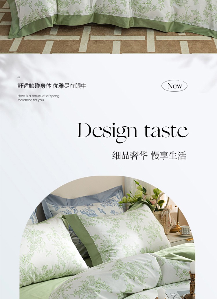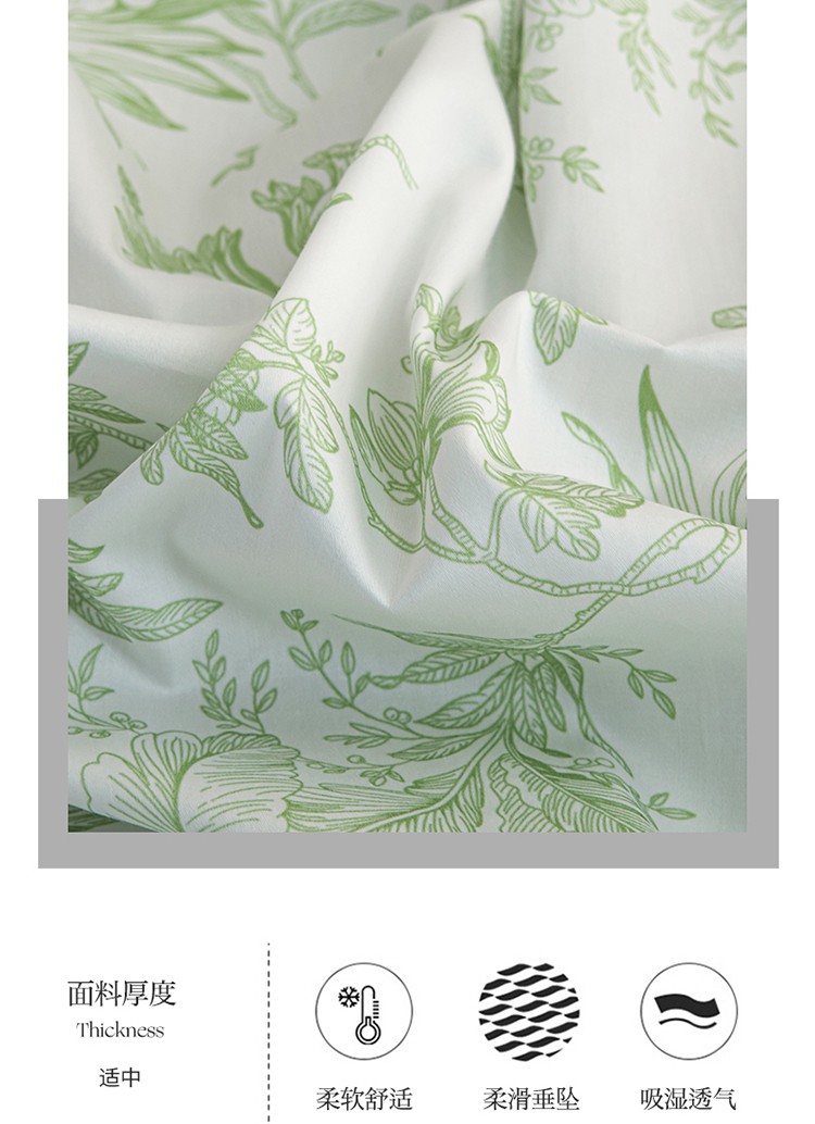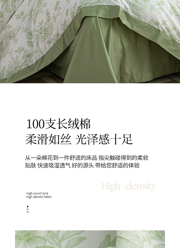 商品名称:安莱 2022新款100支长绒棉数码印花四件套-花屿 鳄梨绿