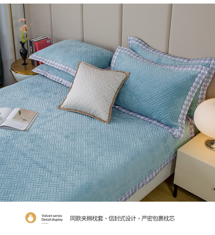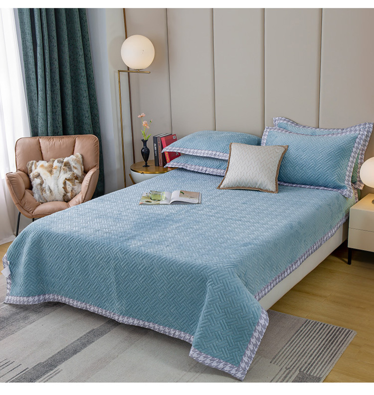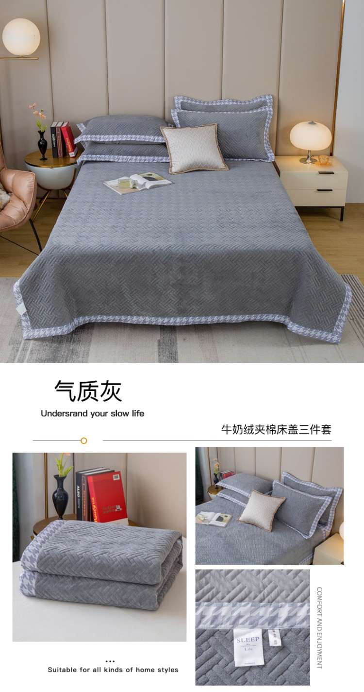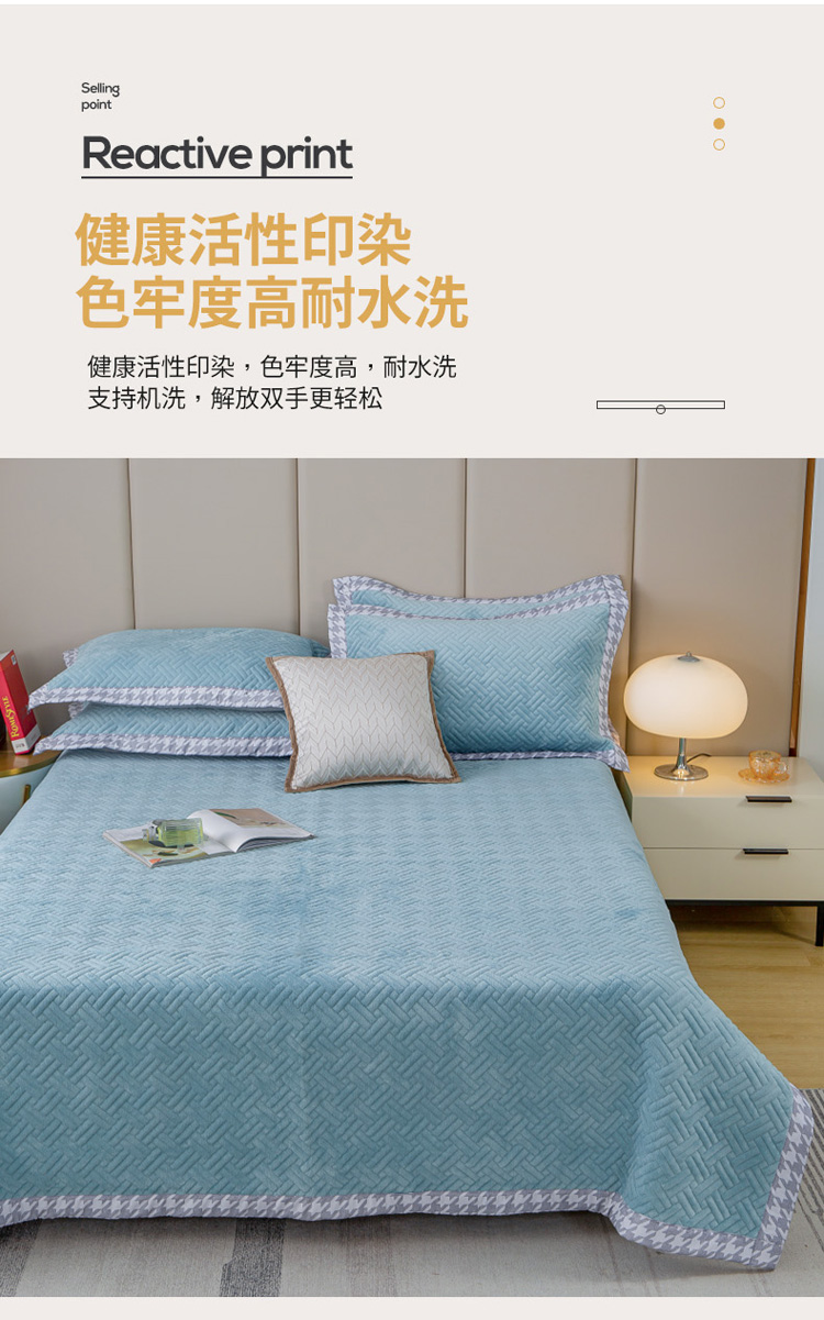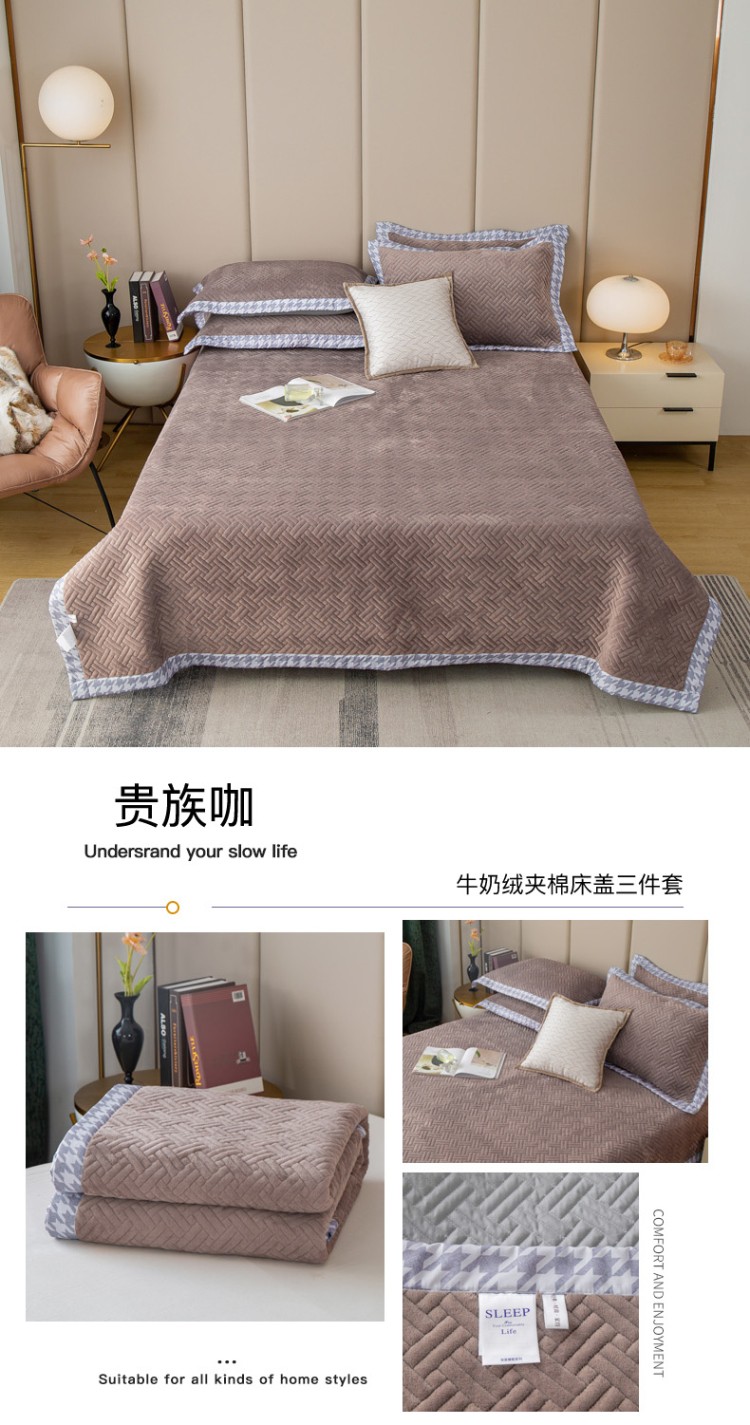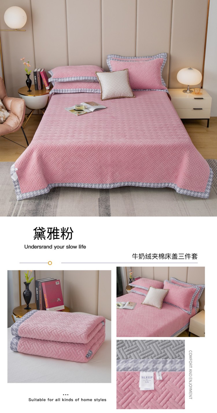 (总)羋多 2023新款数码边素色牛奶绒床盖三件套