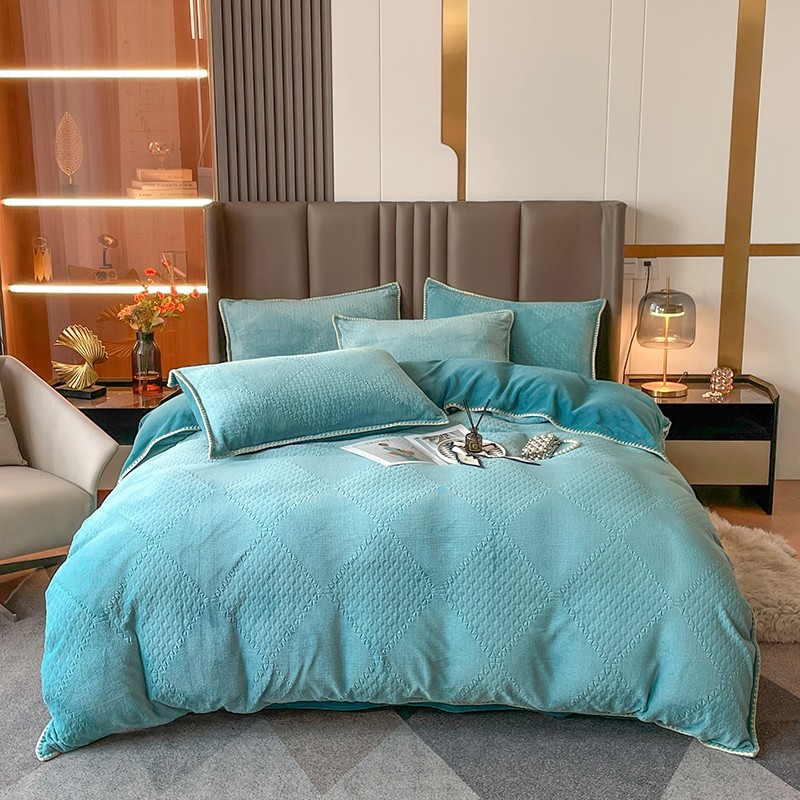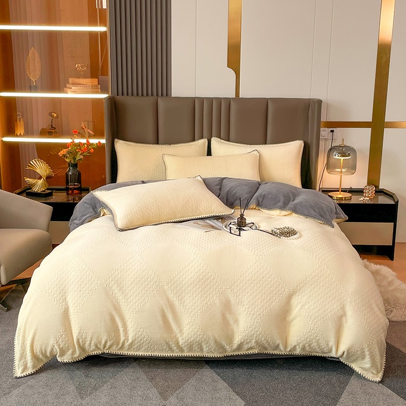 总 金丝鸟 2022新款200克华夫格雕花牛奶绒贝壳边四件套