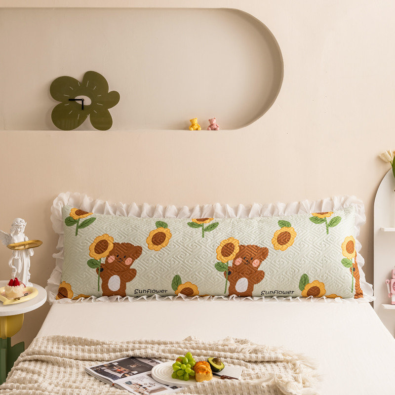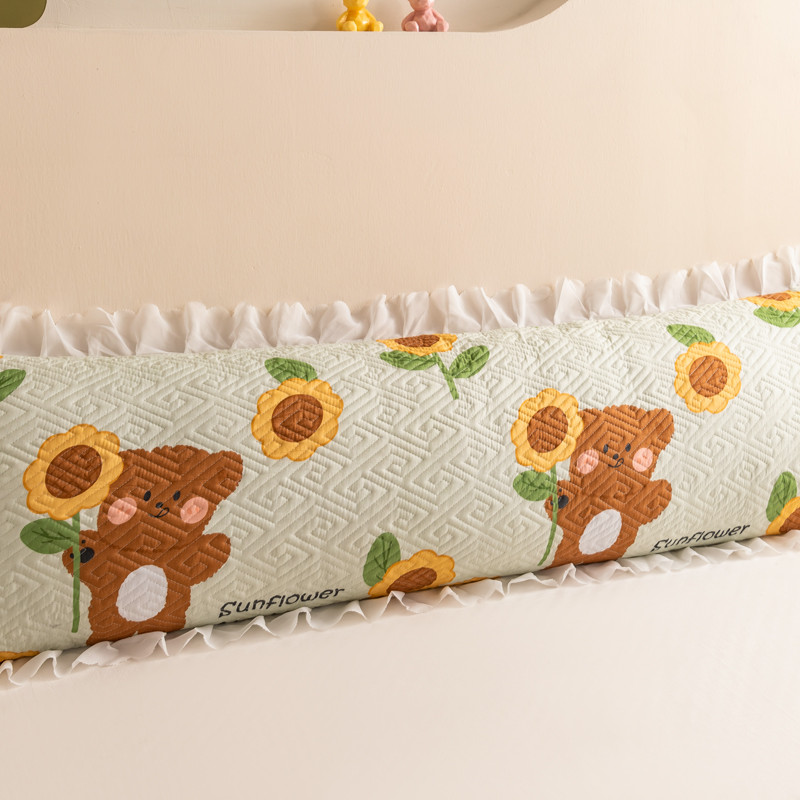 新款磨毛夹棉花边双人长枕套 可爱熊