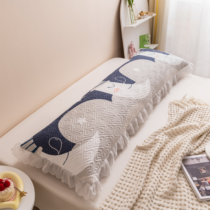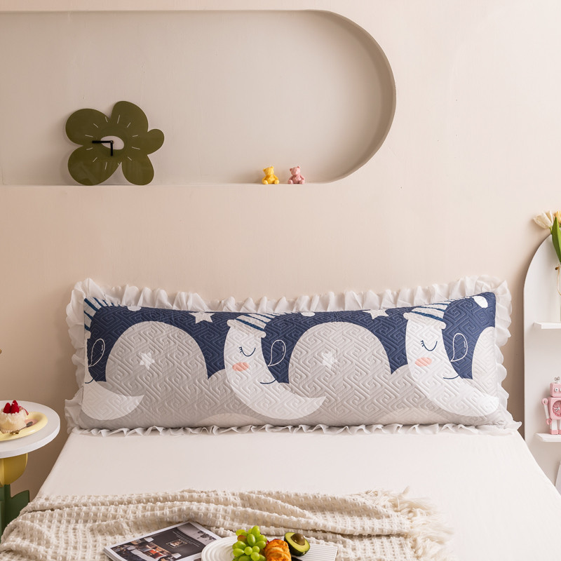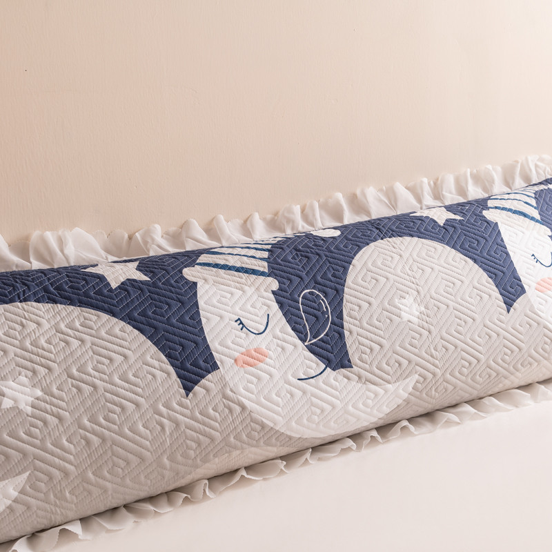 新款磨毛夹棉花边双人长枕套 月亮宝宝