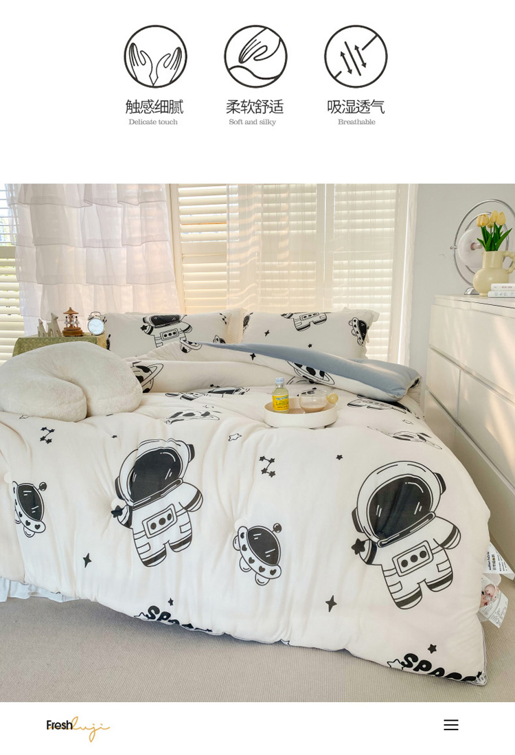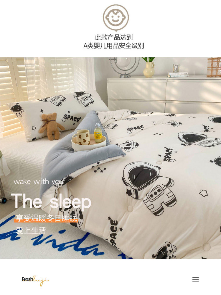 • 91家纺网 家纺一手货源 找家纺 寐居 2022新款A类针织棉超柔保暖印花冬被 太空人
