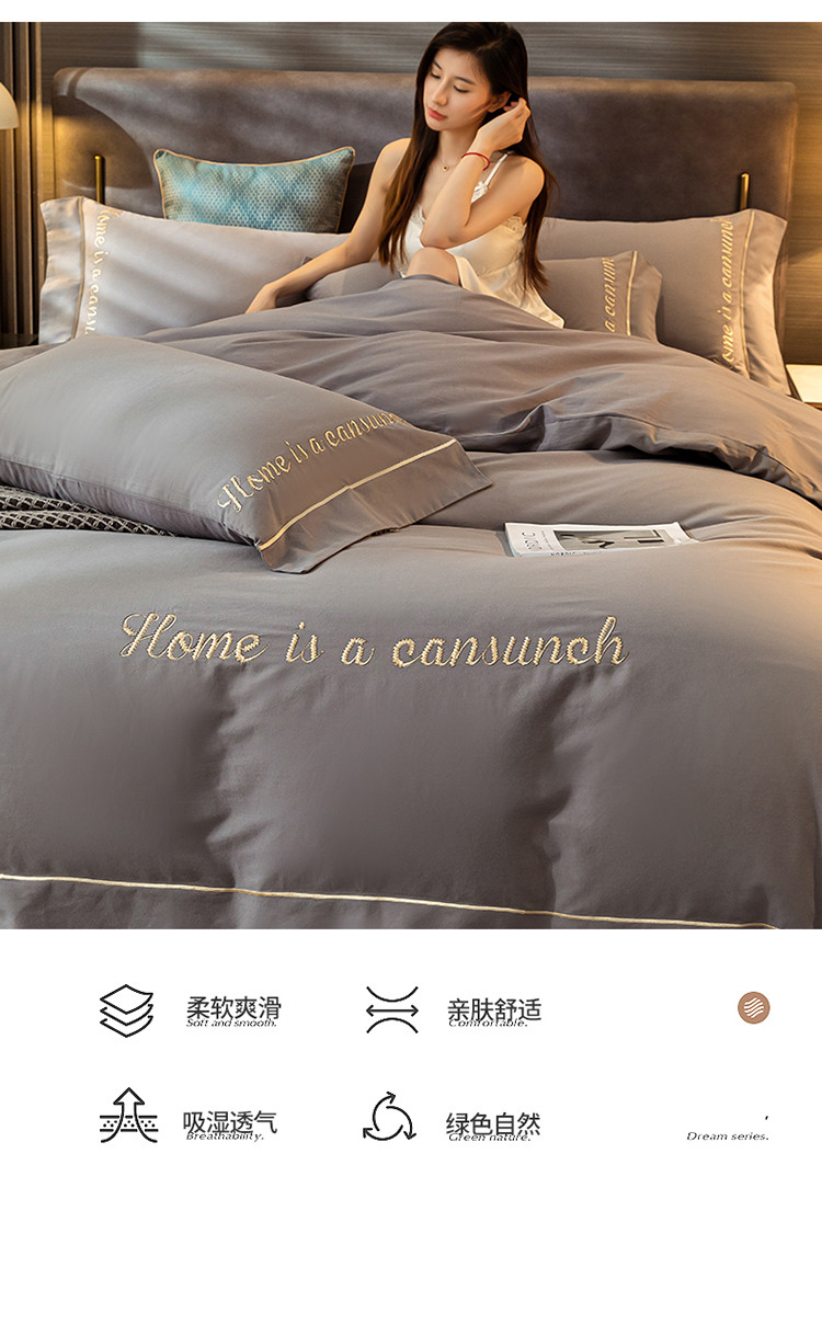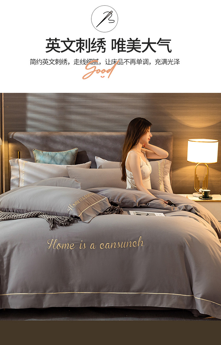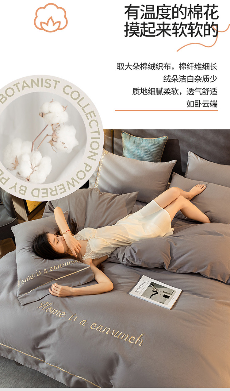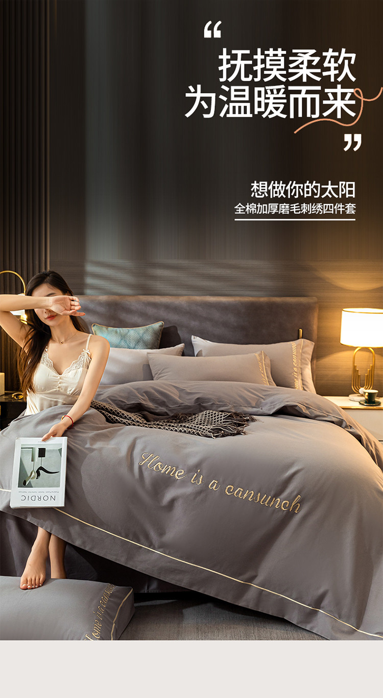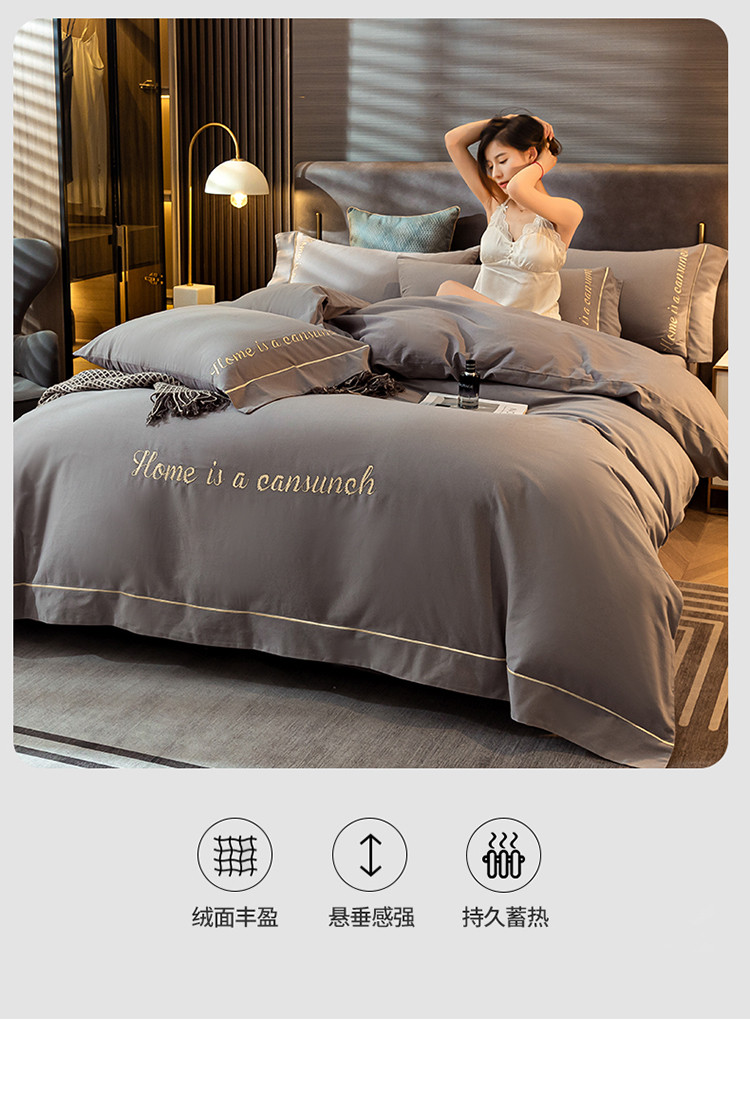 商品名称:蓝米卡夫 2024新款全棉加厚磨毛刺绣套件系列 英伦灰