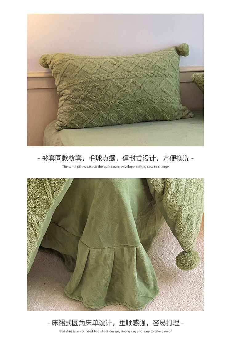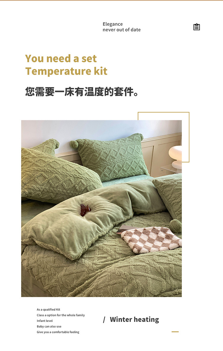 (总)眠屿 2022新款韩国绒绣花四件套-爱心熊,宝石蓝,豆沙粉,芥末绿,奶茶咖
