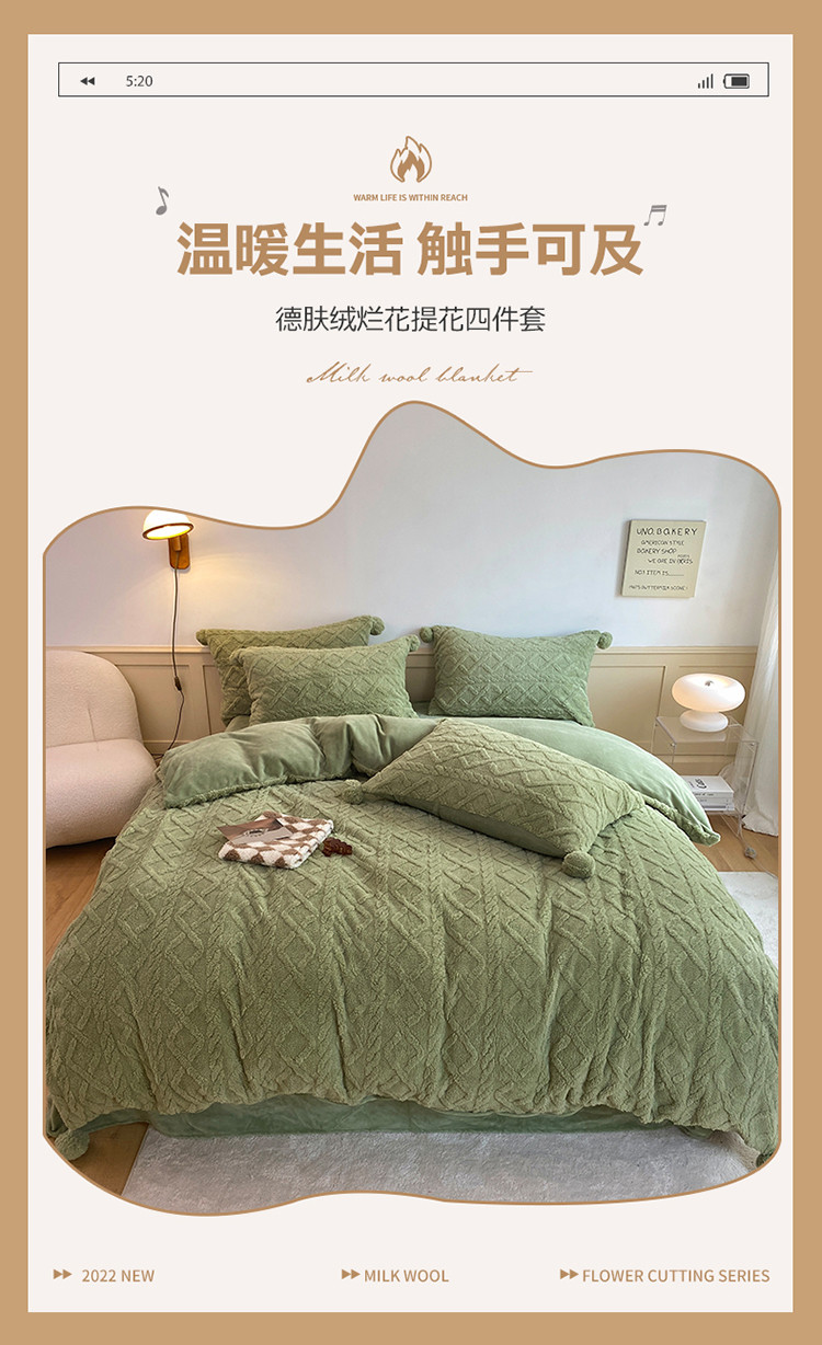 商品名称:眠屿 2022新款提花烂花工艺四件套 抹茶绿