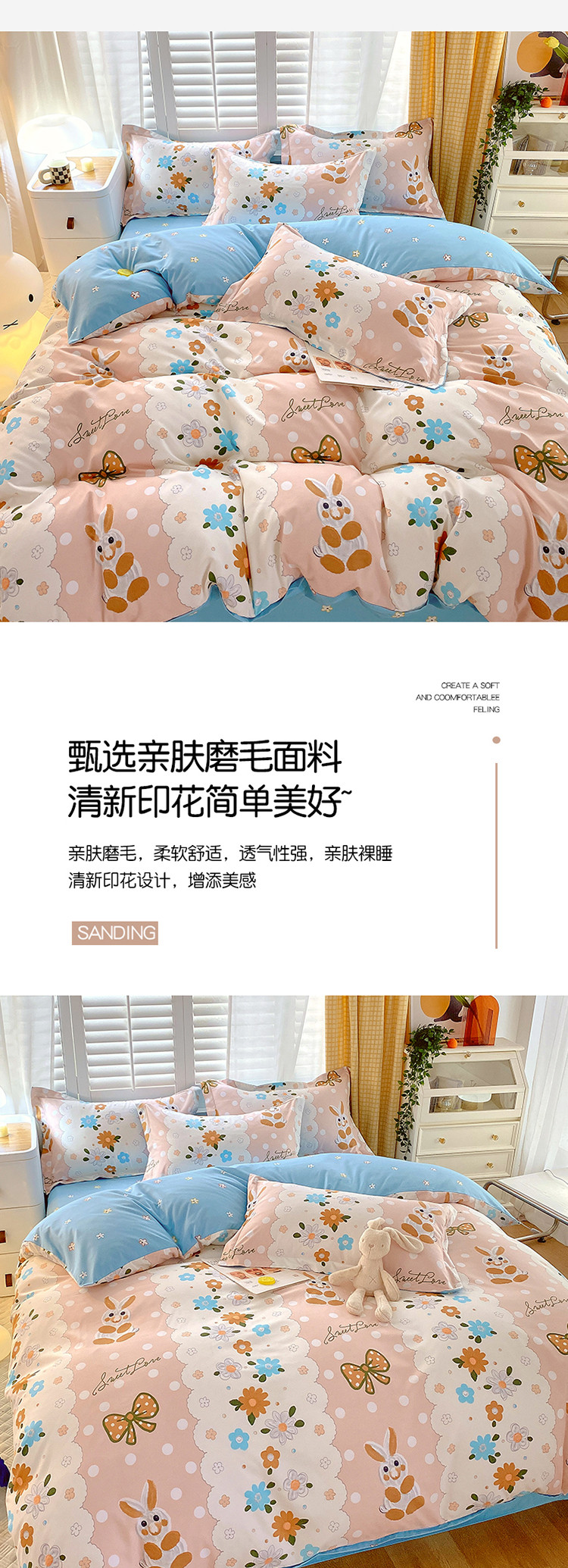 商品名称:(总)艾橙 2022秋冬新款140g植物羊绒磨毛四件套系列